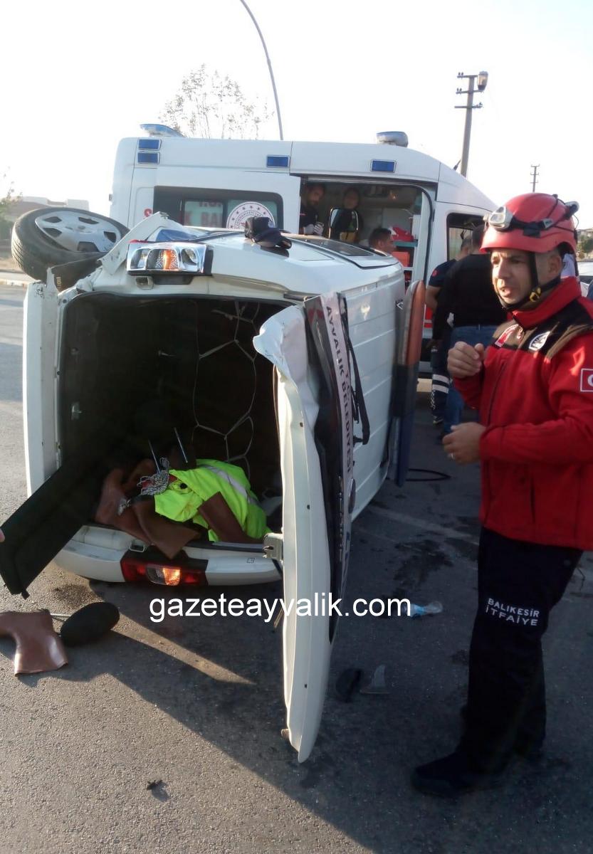 Alınan bilgiye göre; özel bir aracın çarpması sonucu içinde bulundukları 10 BEK 61 plakalı belediye hizmet aracı devrilen zabıta memurları, araçtan Ayvalık İtfaiye Grup Amirliği ekiplerince çıkarıldı. Hafif şekilde yaralandığı belirtilen memurlar, Ayvalık Devlet Hastanesi’nde tedavi altına alındı.
