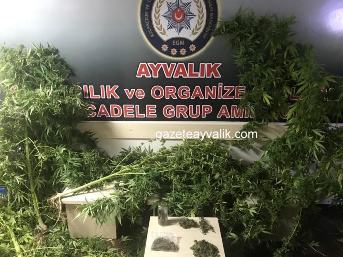Ayvalık’ta bir evde yapılan operasyonda hint keneviri ile uyuşturucu malzeme ele geçirildi.
