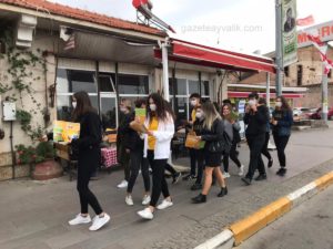 Özel Ayvalık Anadolu Lisesi 11 A sınıfı öğrencileri Ecem Arkun, Rabia Duygu, Olcay Doğa, Biran Ezgi Yüce Kaan İçdağ, Seren Sivaslıoglu, Mehmet Özel, Cansu Dinç , Ulaş Dünya Önbulak, Aziz Yıldız, Dilara Buget, Özgür Kaya, Elif Çakıroğlu ve Neslihan Eser , Fizik Öğretmeni Emine Sözen ve Matematik Öğretmeni Buse Bacan ile 2 -8 Kasım Lösemili Çocuklar Haftası ilgili olarak maskelerini takıp broşür dağıttı. Ayvalık merkez çarşı bölgesi ile sahildeki çay bahçelerine uğrayarak broşür dağıtan öğrenciler, vatandaşlara bilgi verdi.