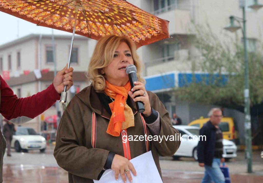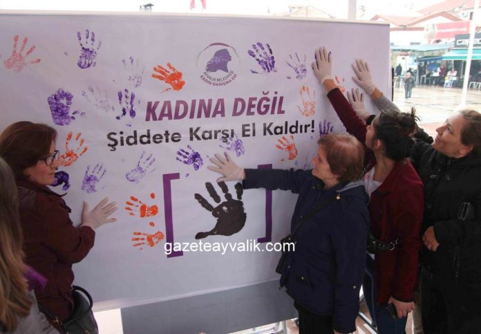 Kadına Yönelik Şiddete Karşı Uluslararası Mücadele Günü nedeniyle Ayvalık Cumhuriyet Meydanı’nda yapılan etkinlikte, kadına yönelik şiddet bir kez daha lanetlendi.