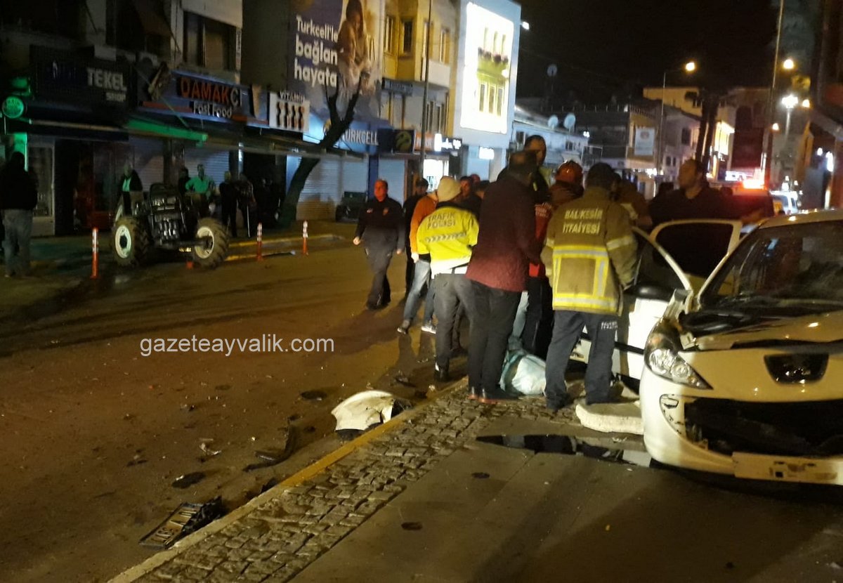 Alınan bilgiye göre; gece 01.00’de meydana gelen kazada, Armutçuk mevkiinden ilçe merkezi istikametine gelmekte olan Ümit Gösterikli yönetimindeki 10 V 5977 plakalı özel otomobil ile ara sokaktan ana artere çıkan Ali Boladanlı’ nın kullandığı 10 ABP 731 plakalı traktör çarpıştı.