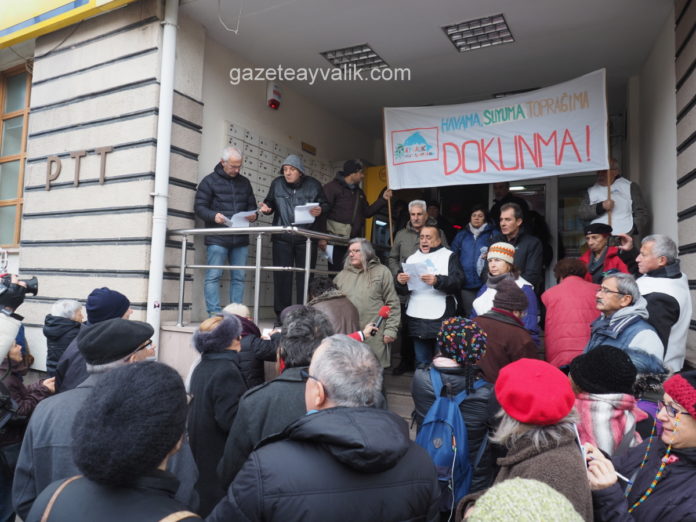 Ayvalık’ta yaşam savunucuları, çeşitli STK temsilcileri ve vatandaşlar, 30 Aralık Pazartesi günü PTT önünde toplanarak Kanal İstanbul’un ÇED Raporuna itiraz dilekçesi verdi.