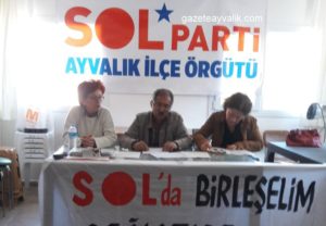 Sol Parti Ayvalık İlçe Örgütü tarafından yapılan açıkamada, “Sol Parti olarak kuruluş sürecimizin ilk adımlarını atıyoruz. Bu adımları atarken siyasi gelişmeler bu adımın ne kadar can yakıcı olduğunu ortaya koyan göstergelerle dolu. Tüm bu ortam içinde Sol Parti, ülkeyi topyekun çürümeye götürecek bu dengeyi değiştirmek üzere harekete geçiyor. Bir büyük çelişki var. Bir yandan zor ve hile dışında yönetemeyen bir iktidar, bir yandan da iktidara atık yeter diyen milyonlar. Biz bu çelişkinin ancak solun etkili güç haline gelmesiyle, halkın ancak solun etkili, güç haline gelmesiyle, halkın örgütlü bir güce dönüşmesiyle mümkün olabileceğine inanıyoruz. Şimdi hep birlikte Türkiye’nin dört bir yanında olduğu gibi Ayvalık’ta da harekete geçiyoruz. Çağrımız Ayvalık halkınadır. Solu etkili kılarak Türkiye’yi değiştirebiliriz. Mahalle mahalle sokak sokak bir araya gelerek katılımcı demokratik halkın inisiyatifini öne alan kolektif bir siyaset sol siyasetin temelini birlikte atalım istiyoruz. Örgütlü olursak özlediğimiz geleceği kurabileceğimizin bilinciyle Sol Partide örgütlenmeye Sol Parti’yi birlikte örgütlemeye davet ediyoruz.” Denildi.