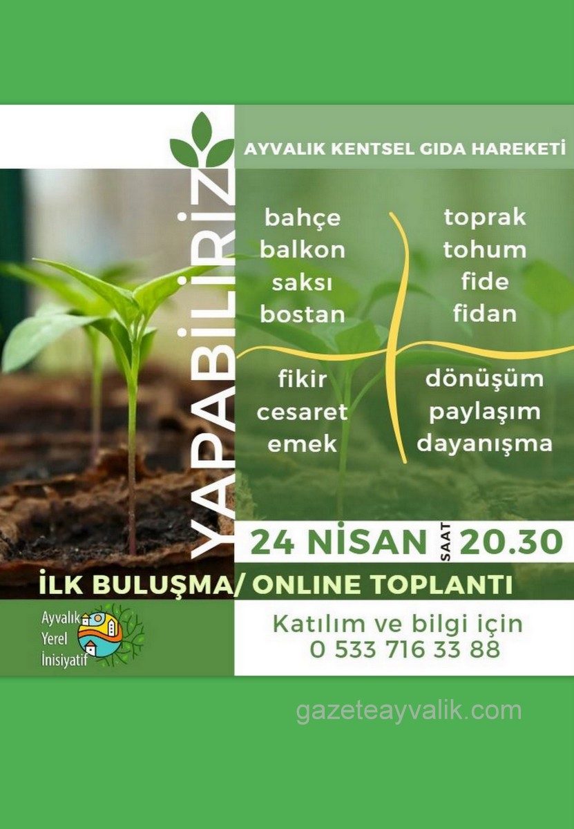Ayvalık Kentsel Gıda Hareketi başlatan Ayvalık Yerel İnisiyatif, ilk toplantıyı online olarak 24 Nisan Cuma akşamı düzenleyecek.