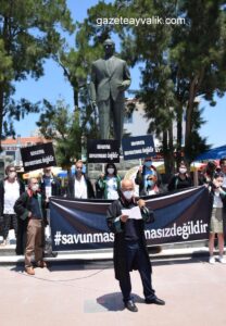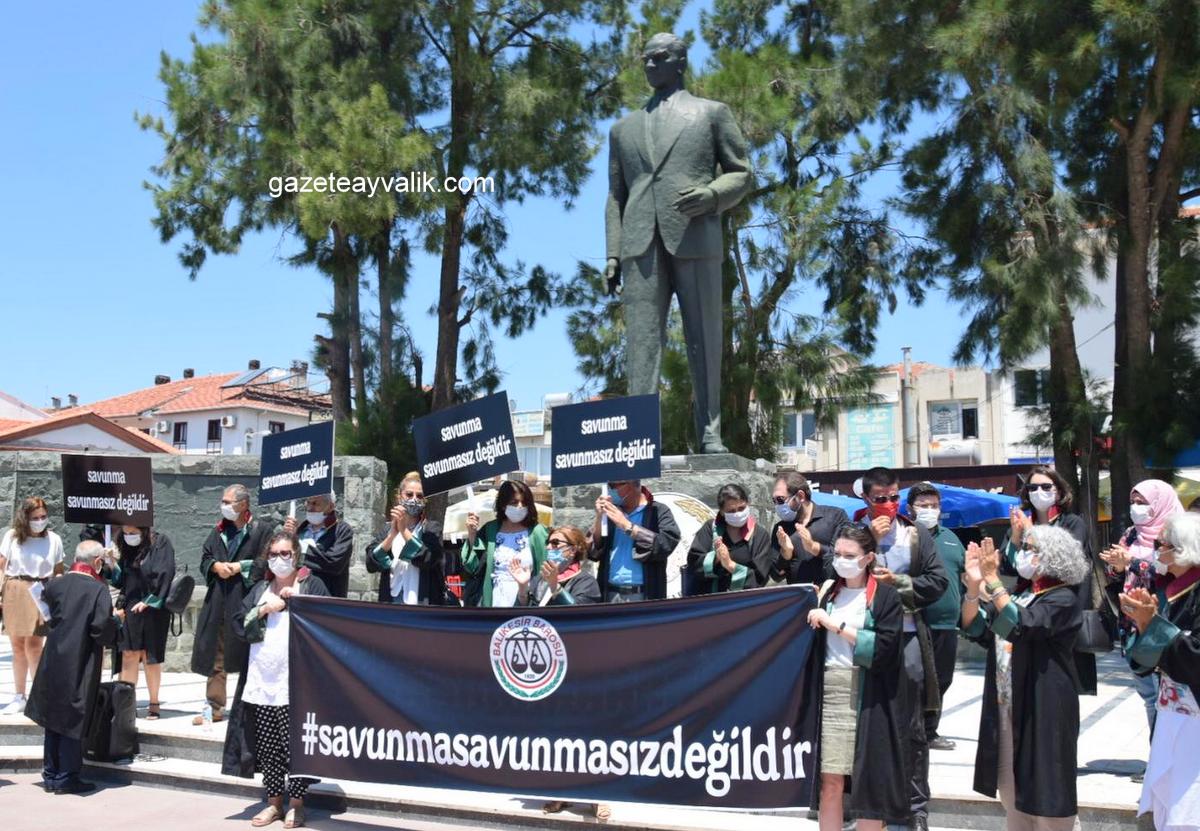Ayvalık’taki çeşitli siyasi parti ve sivil toplum kuruluşları temsilcileri ile vatandaşların destek verdiği protesto açıklamasında, “Asıl amacı özellikle büyükşehirlerde birden çok baro kurulmasına olanak sağlayan Avukat yasa tasarısı, önceki gün aralarında ne yazık ki hukukçuların da bulunduğu 184 milletvekili imzasıyla meclise getirildi. Bu tasarı yasalaşırsa örneğin istanbul’da 23 baro kurulabilecek. Etnik kimliğe dayalı, dine, mezhebe dayalı, bazı partilerin güdümünde barolar ve hemşehri barolar kurulabilecek. Kuşkusuz bu tasarı biz Avukatları bölmeye, Avukat örgütlerini güçsüzleştirmeye ve bizleri sessizleştirmeye yönelik. Kuşkusuz bu tasarı cüppelerimizin önünü ilikletmeye yöneliktir ama bundan daha önemlisi belki de yasanın temel amacı sizlerin savunma hakkınızı kökünden budamaktır. Bu yönüyle bu yasa bizden çok sizleri hedeflemektedir. Bu yüzden bize bizden daha çok sahip çıkmak sizlerin de kaçınamayacağınız bir durumdur. Yargıyı büyük ölçüde siyasallaştıran iktidar şimdi son darbeyi vurmak, bizleri de cüppeleri ilikleyenler haline getirmek istemektedir. Ancak şunların iyi bilinmesi gerekir. Fransız hukukçunun dediği gibi, avukatlar köle kullanmadılar fakat efendileri de olmadı. Biz kendimizi dahi savunamazsak sizleri de savunamayız. Bu yüzden savunma kendini bitmez bir enerji ile savunacaktır. Bizler, başımız önde gezmemek için hiçbir zaman susmayacağız. Sizler de susmayınız” denildi.