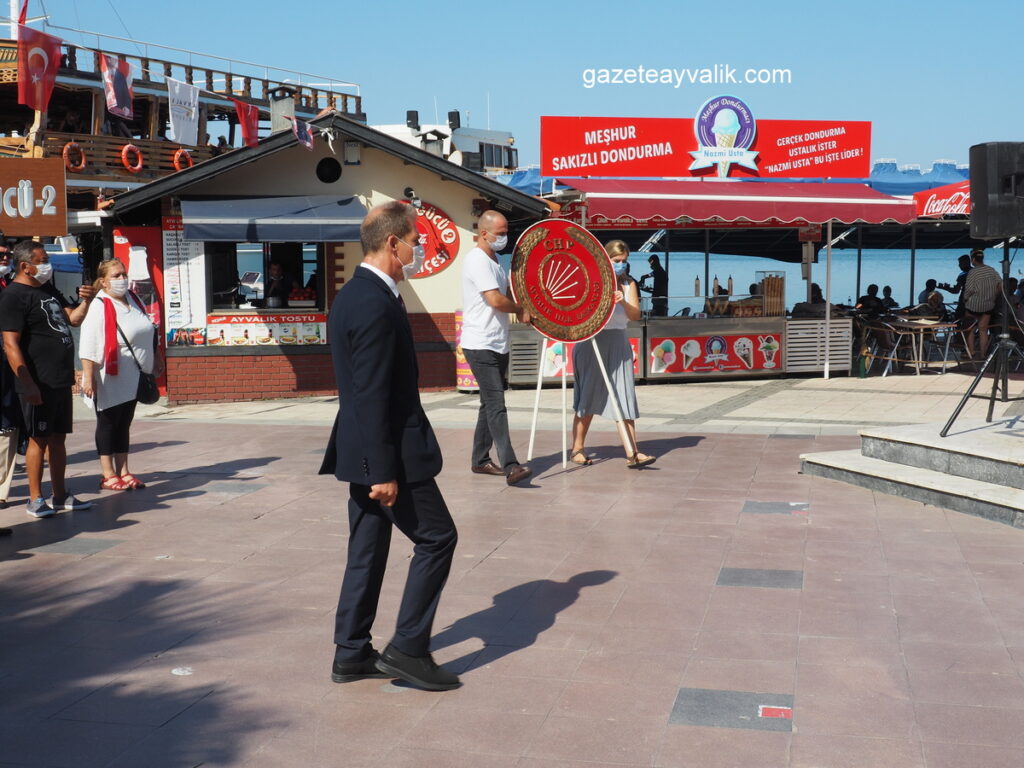 Cumhuriyet Halk Partisi Ayvalık İlçe Başkanlığı, sabah yapılan resmi tören sonrası Atatatürk Anıtına çelenk sundu. Hüseyin Şalmanlı başkanlığındaki CHP’lilerin yanı sıra Deva Partisi İlçe Başkanlığı, ADD ve ÇYDD Şube temsilcileri ile vatandaşlar da çelenk sunumuna katıldı.