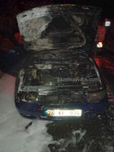 Olay, 6 Ekim Salı akşamı meydana geldi. Alınan bilgiye göre; Talat Aslaner yönetimindeki 26 KF 934 plakalı otomobil, Mutlu Köy ışıklarında seyir halinde iken yanmaya başladı. Araçtaki yangına Ahmet Yalvaç yönetimindeki Ayvalık İtfaiye Grup Amirliği ekipleri müdahale etti. Herhangi bir can kaybının yaşanmadığı olay nedeniyle araçta 15 bin liralık maddi hasar meydana geldi. Yangının çıkış nedeninin aracın motor kısmındaki kısa devre olduğu açıklandı.