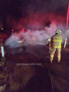 Ayvalık’ta seyir halinde iken aniden yanan otomobil, Balıkesir Büyükşehir Belediyesi İtfaiye Daire Başkanlığı’na bağlı Ayvalık İtfaiye Grup Amirliğince söndürüldü.