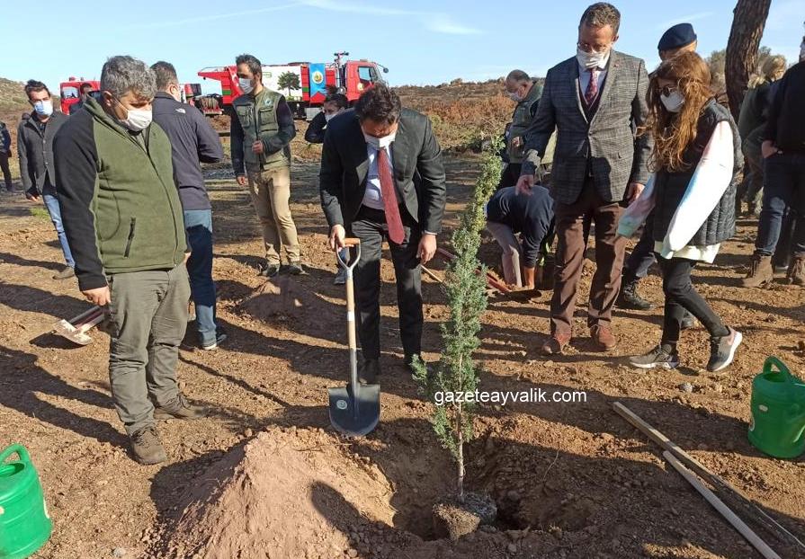 Ayvalık Kaymakamı Gökhan Görgülüarslan, Belediye Başkan vekili Özge Toygar, daire amirleri, Edremit Orman İşletme Müdürlüğü’nden Müdür Yardımcısı Muhammet Solmaz, Ayvalık Orman İşletme Şefliği ekibinin katıldığı törende, Sarımsaklı ile Badavut Mevki arasında bulunan yangın alanına iğde, erguvan, limoni servi, mavi servi, fıstık çamı ve defne fidanları dikildi. Etkinlikte 160 adet fidan dikiminin yanı sıra fidan dağıtımı da yapıldı.