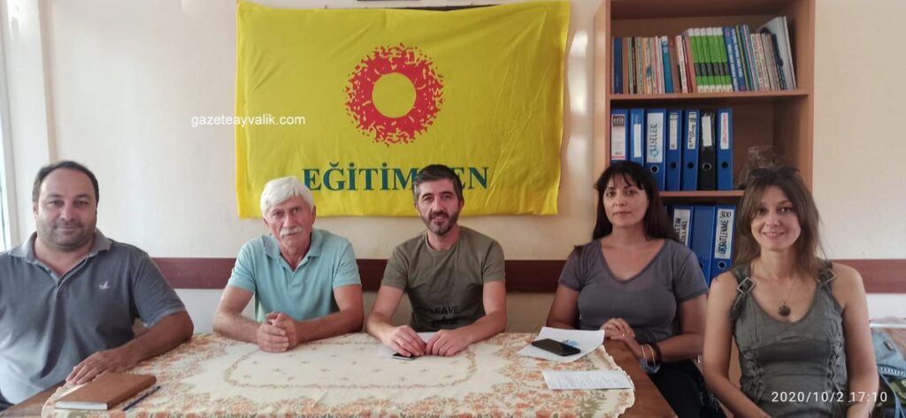 Eğitim -Sen Ayvalık Temsilciliği adına açıklama yapan Şube Başkanı Ersin Ayar, “Korona ilçemizde de hortlamaya başladı. Hastalıktan dolayı eğitim çalışanlar olarak her yönden kıstırıldığımızı hissediyoruz. Öğretmen her ne yaparsa yapsın çocuklarla temas etmesi gerekiyor. Kalemini tutup yazmasına yardımcı olmak zorundayız. Okullarımızda bu nedenle sıkıntı yaşanıyor. Öğretmenlerimiz çok tedirgin. İnsanlar tedirgin. Temaslı öğretmenlerimizden karantinası bitenler oldu ancak okullarda korona vakaları artıyor. Dün akşam bize gelen bilgiye göre, Ayvalık Anadolu Lisesi’nde bir öğrencide virüs tespit edilmiş, bugün de Bahçeşehir Kolejinde. Bu duruma rağmen birinci derece risk grubunda olan eğitim çalışanlarına test yapılmıyor. Biz öncelikli olarak eğitim çalışanlarına test yapılmasını istiyoruz. Korona ile mücadelede sadece okullarda önlem alınması yetmiyor. Öncelikle çalışan velilere yönelik önlemlerle başlaması gereken zincir söz konusu. Velilerimizin hepsi çalışan insanlar ve çalışan velilerin evlerine taşıyacakları virüs öğrenciler aracılığıyla öğretmenlere bulaşacaktır. Öğretmenler bu nedenle büyük risk altındadır. Çalışan insanlara dönük önlemlerin daha sıkı alınması gereklidir. Çalışan insanlara belli aralıklarla test yapılmasını istiyoruz. Hastalık yayılımının bu şekilde önlenebileceğini düşünüyoruz. Sendika olarak İlçe Milli Müdürlüğümüzü ziyaret edip,bu konudaki endişelerimizi ilettik ve bir dosya sunduk. Bu sorun, ilçe Milli Eğitim Müdürümüzü aşan sorun, merkezi hükümet gereken önlemleri almalı.” dedi.