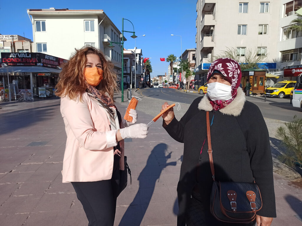 Aile ve Sosyal Politikalar İlçe Müdürlüğü Ayvalık Sosyal Hizmet Merkezi personeli, Müdür Hamza Bozkurt yönetiminde, 25 Kasım Çarşamba günü turuncu maske dağıttı.