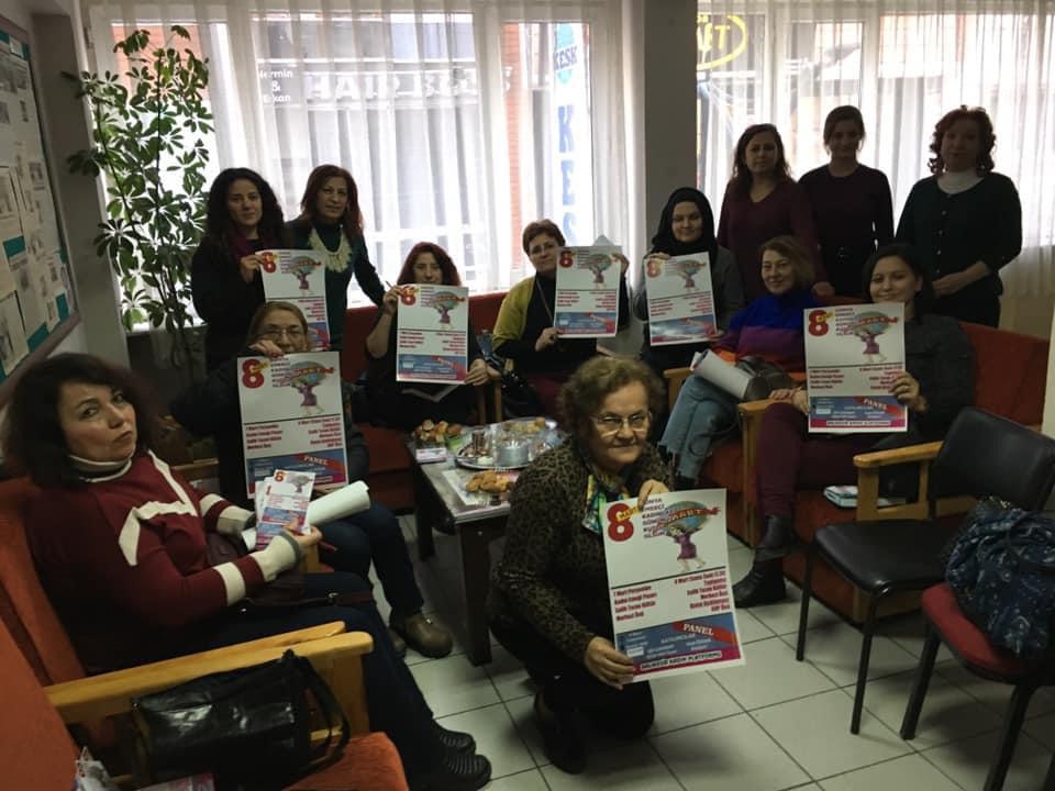 Pandemi öncesi baş gösteren ekonomik krizin faturasını halkın sırtına yıkmak isteyen patronlar ve hükümet, pandemiyi fırsat bildi. Pandemi sürecinde patronların kârına hizmet etmek için atılan her adımın sonuçları, kadın emekçiler için daha da ağır oldu. Bu süreçte okulların kapanması, sokağa çıkma yasakları ve evde kal çağrıları ile çalışmayan ya da çalışamayan hane halkının evde kalması nedeniyle kadınların sırtındaki bakım yükleri arttı. Çocuk bakımı için çözüm bulamadığı için işi bırakmak zorunda kalan kadınların sayısı hızla arttı. Kadınlar, bu sürede üzerlerine yığılan ev içi angaryadan adeta nefes alamaz hale geldi. Tüm bunlarla beraber 2020 yılında Türkiye’de en az 300 kadın erkekler tarafından öldürüldü, 171 kadının ölümü ise şüpheli olarak kayıtlara geçti. Kadınlar canıyla uğraşırken hükümet kadına yönelik şiddetle mücadeleye ilişkin güvenceler veren İstanbul sözleşmesini tartışmaya açtı, kamuoyunda çocuk istismarcıları affetme tasarısı olarak bilinen düzenlemeyi defalarca gündeme getirdi, kadınların kazanılmış haklarına göz diktiğini her fırsatta ilan etti. Ancak tüm bu karamsar tabloya karşı 8 Mart’ın tarihinden öğrendiğimiz gibi, bu yıl da kadınlar kazanılmış haklarına, hayatlarına yönelik her saldırıya karşı, hayattan koparılan her kız kardeşi için meydanları terk etmedi, kendine reva görüleni kabul etmedi. 8 Mart Dünya Emekçi Kadınlar Günü’nde dünyanın her yerinde olduğu gibi Türkiye’de de kadınlar, kadınlara reva görülen koşullara karşı onları ortaklaştıran yoksulluk, işsizlik, kriz, eşitsizlik ve şiddete karşı taleplerini haykıracak. Kapitalist sömürü düzenine karşı emekçi sınıflarla birliklerini güçlendirmeye, cesaretlerini, umutlarını ve mücadelelerini büyütmeye devam edecek. Güvenceli iş, şiddetsiz yaşam ve eşitlik için meydanları dolduracağımız bugün de, tüm dünya ülkelerinin emekçi kadınlarına selam olsun! Yaşasın 8 Mart!” Denildi.
