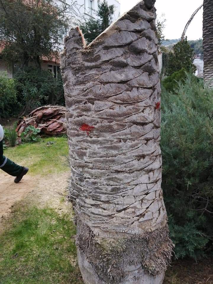 Üzüntüden tansiyonu çıktığını ifade eden Aysel Namlı, “Eski düzenlemesinde ortasındaki yolun iki tarafında ağaç bulunuyordu. Bir tarafında 3 diğer tarafında 3 olmak üzere 6 palmiye ağacımızdan geriye Cuma günü vinçle kesilecek palmiyeden sonra 2 palmiyemiz kalacak. Özetle yolun bir tarafında ağaç kalmayacak. Büyük ihtimalle geriye kalan 2 palmiyeden birinde de hastalık var. Palmiyeli evin palmiyeleri yok artık. Ülkemizin birçok kentinde uzun süredir palmiyelere gelen bu hastalığın nedeni kırmızı böceğin yanı sıra mevcut hükümetin ucuz ithal edilen ağaçların yasaklanma uyarısını dikkate almaması ve gelmiş geçmiş bazı yerel yönetimlerin duyarsızlığından kaynaklandığı da ne yazık ki gerçektir. Hastalık zamanında önlem alınmadığı için bu duruma geldi. 2012 yılında valilikler ve kaymakamlıklar belediyelere yazı göndermiş. Şimdi ceremesini vatandaş ödüyor. Bu ucuz phonixlerin ithalatı yasaklanmadığı sürece bu salgının önlenmesi zor. “ dedi.