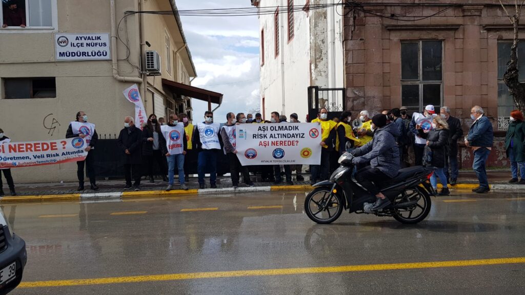 Eğitim- Sen, Eğitim- İş ve Türk Eğitim- Sen Ayvalık Temsilcilikleri, İlçe Milli Eğitim Müdürlüğü önünde yaptıkları ortak açıklamada, bakanlık tarafından verilen söze rağmen yüzyüze eğitim öncesi köy öğretmenleri dışında öğretmenlere asi yapılmadığına dikkat çekildi.
