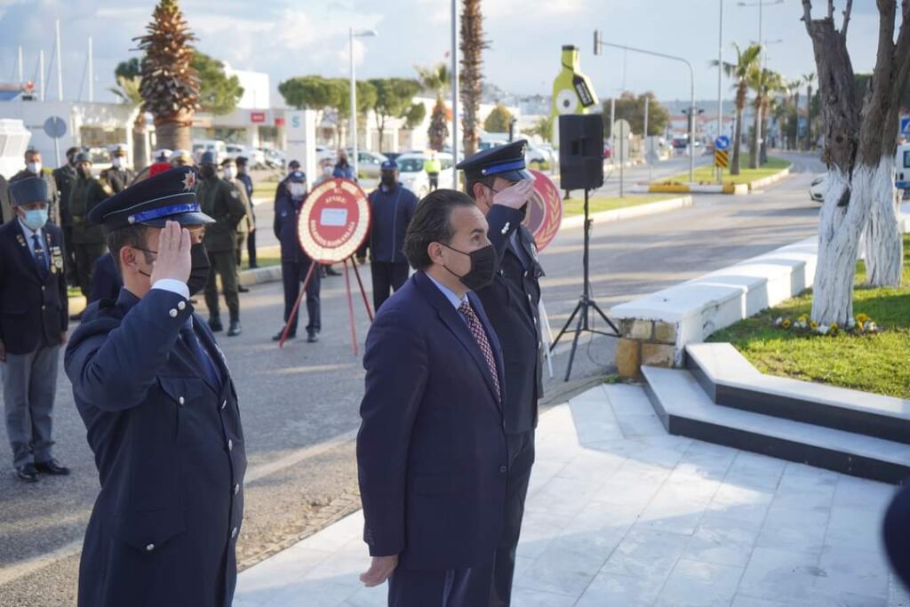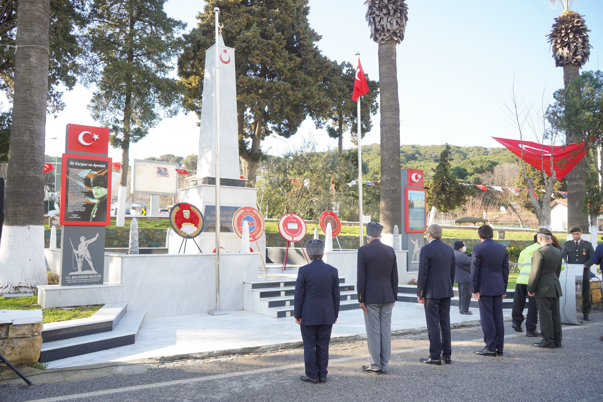Ayvalık Şehitler Anıtında düzenlenen çelenk sunma törenine, Ayvalık Kaymakamı Gökhan Görgülüaslan, Garnizon Komutanı Albay Ertan Tutar, Belediye Başkanı Mesut Ergin, Sahil Güvenlik Kuzey Ege Grup Komutanı SG.KD. Binbaşı Sadun Özdemir, Ayvalık İlçe Jandarma Komutanı Yüzbaşı Güneş Eliş, Ayvalık İlçe Emniyet Müdür Vekili Savaş Sağtaş, Ayvalık Müftüsü Emre Önal, Türkiye Gaziler ve Şehit Aileleri Kültür ve Dayanışma Vakfı Ayvalık Şube Başkanı Mehmet Kıranoğlu, şehit aileleri, siyasi parti, sivil toplum kuruluşları temsilcileri katıldı.
