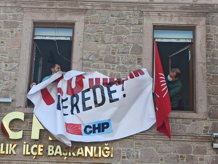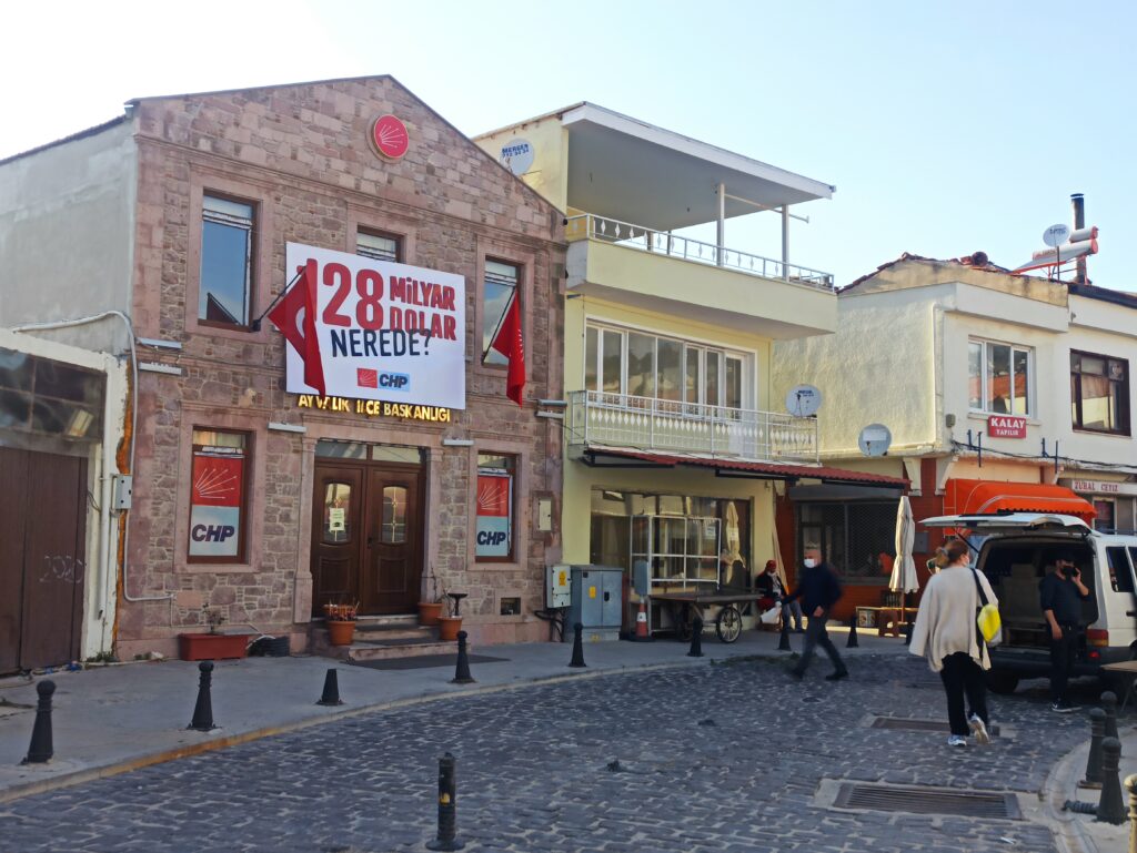 CHP’nin yurt genelinde reklam panolarına astığı ancak “Cumhurbaşkanına hakaret” gerekçesiyle toplanan “128 milyar dolar nerede?” yazılı afiş bu kez Ayvalık’ta CHP ilçe binasına asıldı. Kısa sürede parti binasına gelen polis, savcılık talimatıyla afişi kaldırdı.