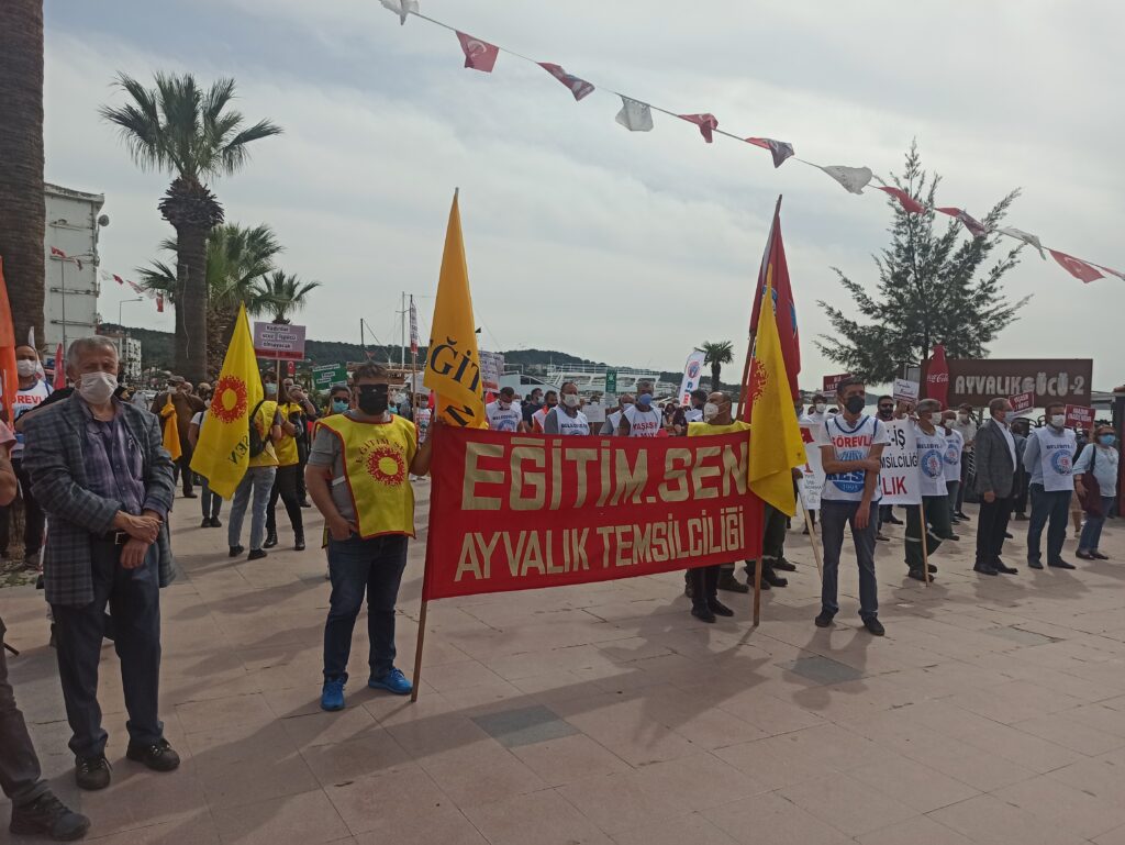 Ayvalık Demokrasi Platformu adına yapılan açıklamada, ‘Yaşamını emeğiyle sürdürmek zorunda olanlar, Küresel salgın şartlarında fedakarca çalışmak durumunda canlarını ortaya koyanlar, Hepinize selam olsun. Bugün 1 Mayıs. Biziz hayatı yaratan ! Bugün bizim günümüz! Bugün emeğin birlik, mücadele ve dayanışma günü! Bugün yarınlar için direnenlerin günü! Bugün 1 Mayıs İşçi Bayramı! İşçi sınıfının Uluslararası Birlik, Mücadele ve Dayanışma Günü 1 Mayıs’a bu yıl da küresel salgının gölgesinde giriyoruz. Dünya çapında 3 milyondan fazla kişinin hayatını kaybetmesine neden olan salgın hepimizin hayatını olumsuz etkilemeye devam ediyor. Dünya çapındaki büyük sermaye sahiplerinin servetlerine servet kattığı salgın döneminde, emeğiyle geçinenlerin hayatları daha da zorlaştı. Büyüyen işsizlik, kötüleşen çalışma şartları ve artan hayat pahalılığı nedeniyle halkın büyük kesimi borç krizi ve yoksulluk içinde yaşam mücadelesi veriyor. Bu durumun nedeni salgın değil, halkın sağlığını ve refahını önemsemeyen, kendi dar çıkarlarını korumak için toplumun ortak çıkarlarını göz ardı eden siyasi iktidardır. Bu durumun nedeni kapitalist sömürü düzenidir! Kapitalizm daha fazla sömürü peşinde iken meslektaşlarımız dâhil bütün emekçiler yoksullaşma, işsizleşme, esnek, güvencesiz çalışma biçimleri ve yoğun sömürü koşullarında alın teri dökmektedir. Ülkemizde artık iki ayrı dünya, iki ayrı hayat yaşanmaktadır. Sarayın gerçeği ile halkın gerçeği arasındaki fark giderek büyümektedir. Yoksulluk ve yoksunluk bu ülke topraklarından hiç olmadığı kadar derinleşmiştir. Akşam pazarlarında tezgâh altlarında erzak arayanların, ucuz ekmek için Halk Ekmek büfeleri önünde kuyruk bekleyenlerin, dükkânını açamadığı için iflasın eşiğine gelenlerin, ürününü satamadığı için tarlasını ekemeyenlerin, kısa çalışma ödeneğiyle-nakdi ücret desteğiyle ay sonunu getiremeyenlerin ülkesi haline geldik. Gelecekten umudu olmayan nesillerin ülkesi olduk.