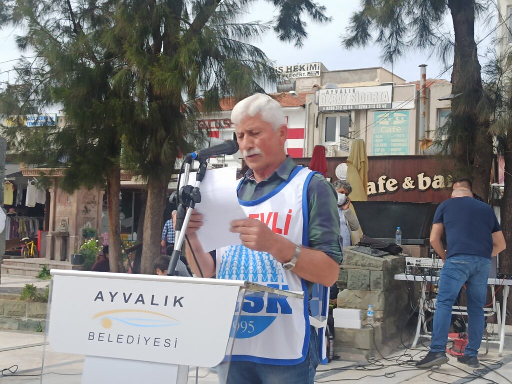 Usta Şair Nazım Hikmet dizeleriyle başlayan kutlamada, işçi ve emekçilerin küresel salgın şartlarında fedakarca çalışarak canlarını ortaya koyduğunu ifade eden Belediye -İş Sendikasından Didem Tığ, Ayvalık Demokrasi Platformu adına yaptığı konuşmada, ‘Emekçilerin yok sayıldığı, haklarının gasp edilmeye çalışıldığı, güvencesizliğe , işsizliğe ve sefalete mahkum edildiği bir dünyada ne salgınla mücadele edilebilir ne de hayat sürdürülebilir’ dedi.