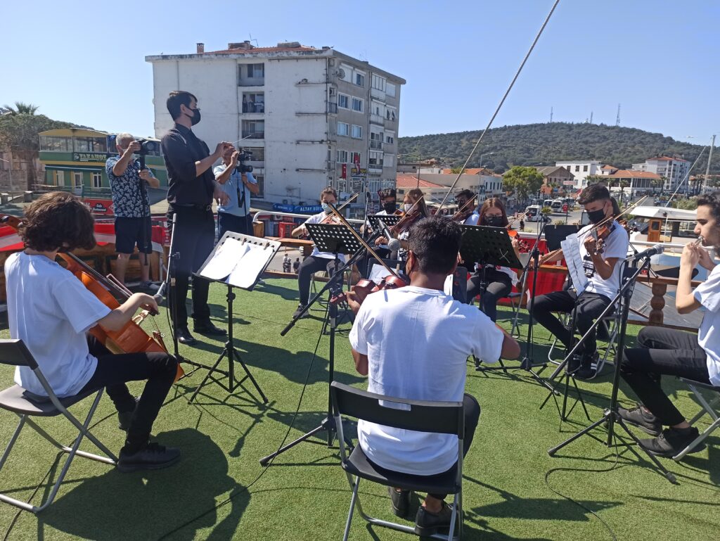 Günün anlam ve önemine ilişkin konuşma ve şiirlerin ardından Gondolda İzmir Bandosu Orkestrası tarafından meydanda mini konser verildi. Gençlik marşı ve hayat Bayram olsa adlı şarkıları çalan orkestraya halk alkışlarla eşlik etti. Programın son etkinliği, gezi teknesinde verilen mini konser oldu. Sebahat- Cihan Şişman Güzel Sanatlar Lisesi öğrencileri ve zeytin çekirdekleri, öğretmenleri Çağrı Çalışır ve Nazire Özeren Gülder yönetiminde ‘İzindeyiz’ ve ‘İzmir Marşı’ nı çaldı. İlçe protokolü ve vatandaşlar kıyıda konseri dinledi.