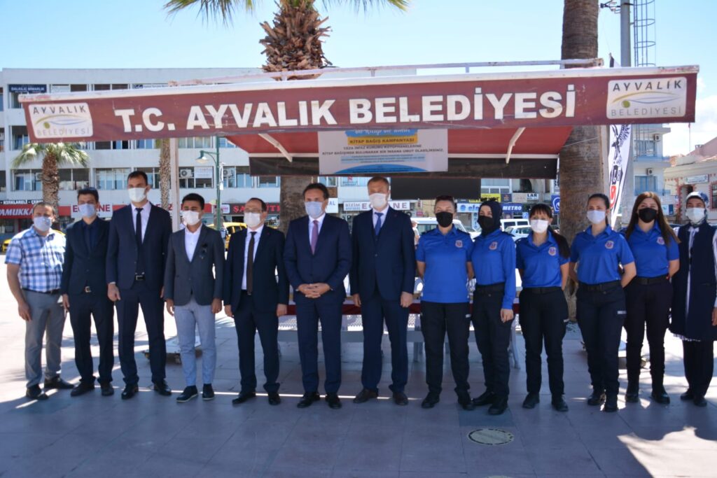 Cumhuriyet Meydanında düzenlenen törene Kaymakam Gökhan Görgülüarslan, Belediye Başkanı Mesut Ergin, Cumhuriyet Başsavcısı Kürşat Albayrak, Ayvalık Kadın Ceza İnfaz Kurumu 2. Müdürü Murat Yusuf Özbay, idare memuru Ali Sevindik, Sosyolog Halime Eser Arısu ve personeller katıldı.
