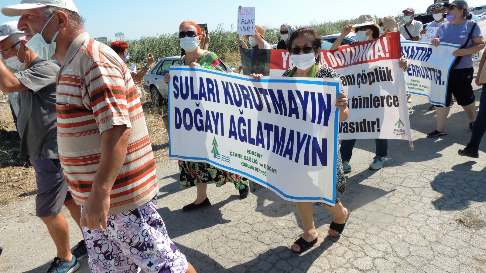 “Yüzlerce canlı türüne ev sahipliği yapan Kuzey Ege bölgesinin son sulak alan ekosistemlerinden biri olan Akçay Sazlığı ve Sulak Alanı uzun süredir çeşitli tehditler altındadır ve giderek yok olmaktadır. Uzun süredir giderek küçülen sulak alandan geriye kalan 148 hektarlık alan ise Tarım Orman Bakanlığı Doğa Koruma ve Milli Parklar Genel Müdürlüğü Sulak Alan Envanter Sistemi (SAYBİS) de kayıt altına alınmıştır ve Bakanlığın web sitesinde yayınlanmaktadır. Kayıtlı sulak alanı yasal olarak koruması gereken kurumlar da ne yazık ki duyarsız davranmakta ve sulak alanın tahribatına ve başka amaçlarla tahsisine göz yummaktadır. Bugün buraya geliş nedenimiz Bakanlık web sayfasında ilan edilen Akçay Sazlığı ve Sulak Alanı haritasına göre sulak alan içinde olan bir alanda Engin Gayrimenkul tarafından villa amaçlı temel atma töreni çağrısıdır. Şirketin sosyal medyada verdiği ilanda, temel atma töreninin Tolga Sağ’ın da yer alacağı bir konserle gerçekleştireceği bilgisi yer almıştır. “Akçay Enginkent” olarak pazarlanan proje kapsamında 200 adet 300 metrekarelik villa arazisi yer aldığı belirtilmekte ve araziler en az 300 bin TL ye pazarlanmaktadır. Proje satış ve tanıtım videolarında CHP İstanbul Milletvekili Sn. Gürsel Tekin’in yer alması ise oldukça üzücüdür. Şirketin temel atacağı bilgisi üzerine, Dernek olarak Edremit Belediyesi, Çevre ve Şehircilik İl Müdürlüğü, Tarım ve Orman İl Müdürlüğü ve Edremit,Kaymakamlığı’na yazılı olarak başvurarak bu alanla ilgili inşaat ruhsatının olup olmadığını ve bu projenin1/100.000’lik Balıkesir Çanakkale Çevre Düzeni Planı’na uygun olup olmadığını sorduk. Sorularımızı ayrıca basın ve kamuoyu huzurunda da duyurduk. İlgili kurumlardan sorduğumuz soruların yanıtlarını bekliyoruz. Şirket yetkilileri bizi arayarak proje alanlarının imarlı ve tapulu olduğunu ve sulak alanla ilgisi bulunmadığını belirttiler. Bizler de kendilerinden inşaat ruhsatları olup olmadığını sorduk. Şirket temsilcileri, inşaat ruhsatı için Belediyeye başvurduklarını ancak henüz ruhsat alamadıklarını itiraf ettiler. Biz de “Bu durumda nasıl temel atma töreni düzenliyorsunuz?” diye sorduğumuzda, temel atmaktan vazgeçtiklerini ve yalnızca konser düzenleyeceklerini belirttiler.” Engin Gayrımenkul’ün reklamlarında,Yapılacak olan temel atma töreninde önceki dönem CHP İl Başkanı ve CHP Milletvekili Gürsel Tekin’in yer almasına tepki gösterilirken, gerçekleştirilecek olan konserde de Tolga Sağ gibi sanatçıların yer alacağına da dikkat çekildi.Yaşam savunucuları,Akçay Sazlığı ve Sulak Alanı’nı imar rantçılarına teslim etmeyeceklerini ve sonuna kadar sahip çıkacaklarını belirterek yaptıkları basın açıklamasının ardından alandan ayrıldı.