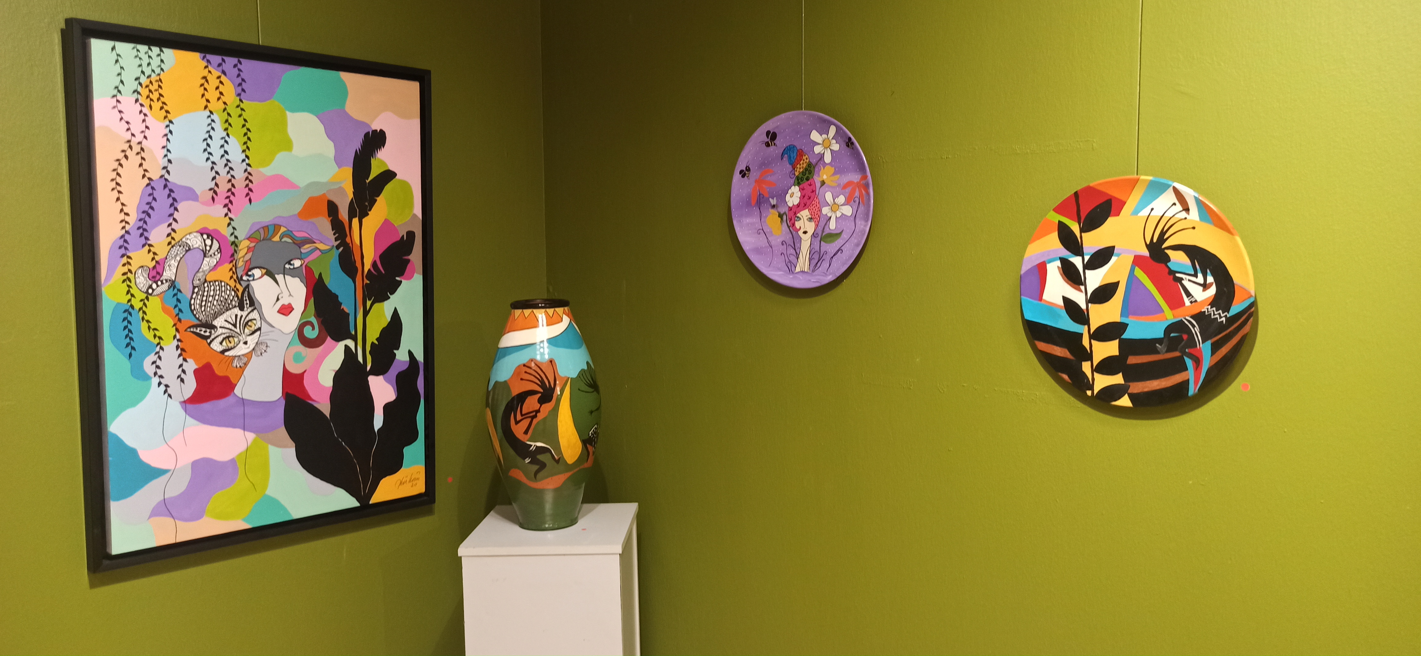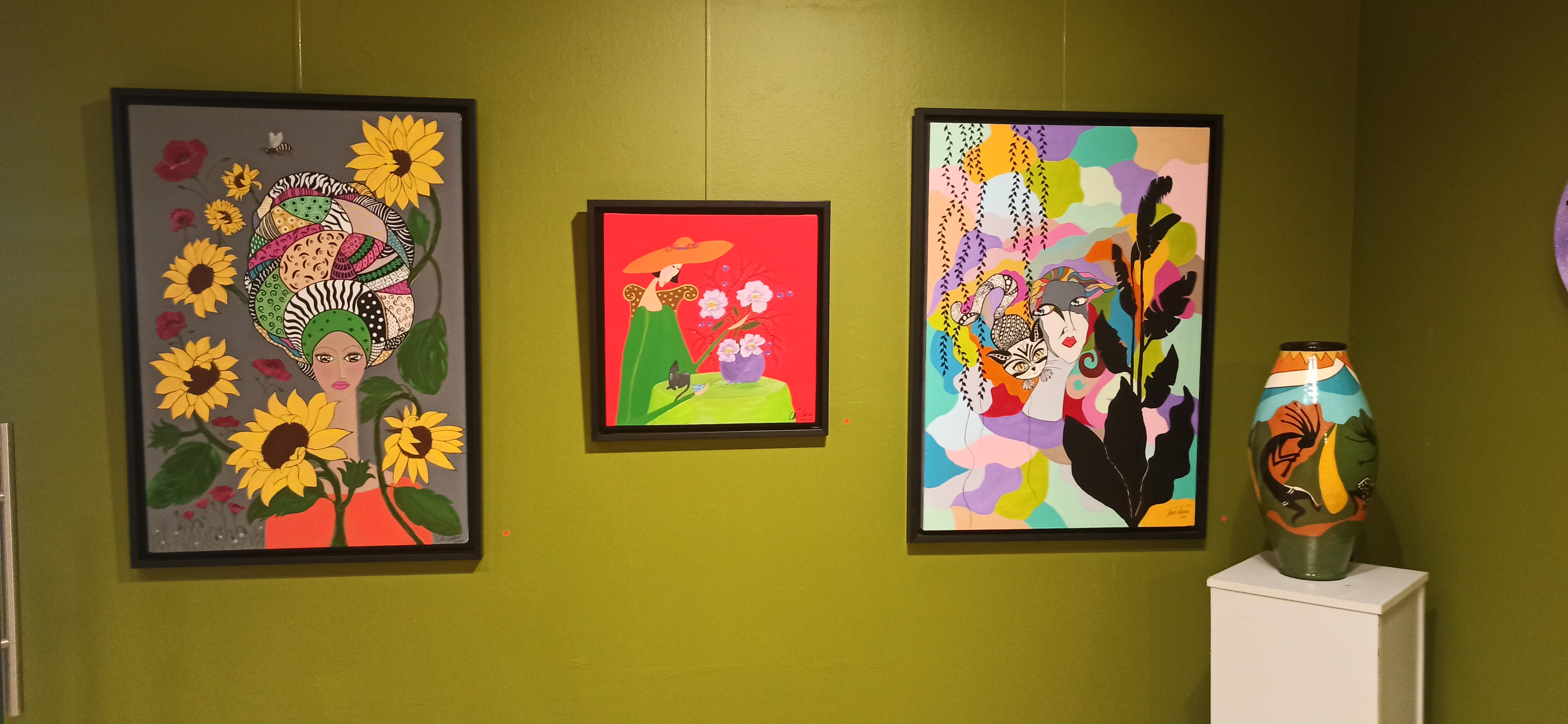 Kadını rengi, özgürlüğü ve güzelliği ile yansıtan Türkan Gündoğdular’ın Ayvalık ve doğa konulu resim ve terracotaları da büyük beğeni topladı.