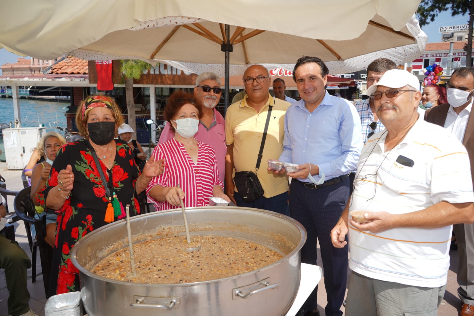 Ayvalık Cumhuriyet Meydanı’nda düzenlenen aşure payına, Kaymakam Gökhan Görgülüarslan, Belediye Başkanı Mesut Ergin, İlçe Emniyet Müdürü Turgut Coşkun, Gümrük Müdürü Mesut Koç, Müftü Emre Önal, İlçe Tarım Müdürü Zeki Volkan Oral, Ak Parti İlçe Başkanı Ali Gür ve ilçe Teşkilatı, CHP Ayvalık İlçe Başkanı Hüseyin Şalmanlı ve ilçe Örgütü, MHP Ayvalık İlçe Başkan vekili Ahmet Yalın ve ilçe yönetim Kurul Üyeleri ,İYİ Parti Ayvalık İlçe Başkanı Gülden Sütçüoğlu ve İlçe Yönetim Kurulu Üyeleri,DSP Ayvalık İlçe Başkanı Hasan Atmaca ve İlçe Yönetimi, Saadet Partisi Kadın Kolları Başkanı Yasemin Memiş ve İlçe yönetimi, ADD Ayvalık Şube Başkanı Ahmet Üzgeç, ATO Laboratuar A.Ş.Başkanı Ali Uçar ve ATO Meclis Üyeleri, Ayvalık Kızılay Şube Başkanı Mehmet Anıl Okyar, Ayvalık Belediyesi bir önceki dönem Belediye Başkanı Rahmi Gençer, Cumhuriyet Kadınlar Derneği Başkanı Gülden Sarıbaş, ÇYDD Ayvalık Şube Başkanı Gülden Belge, KESK Ayvalık Şube Başkanı Ersin Esen ve Yönetim Kurulu’nun yanı sıra çok sayıda vatandaş katıldı.