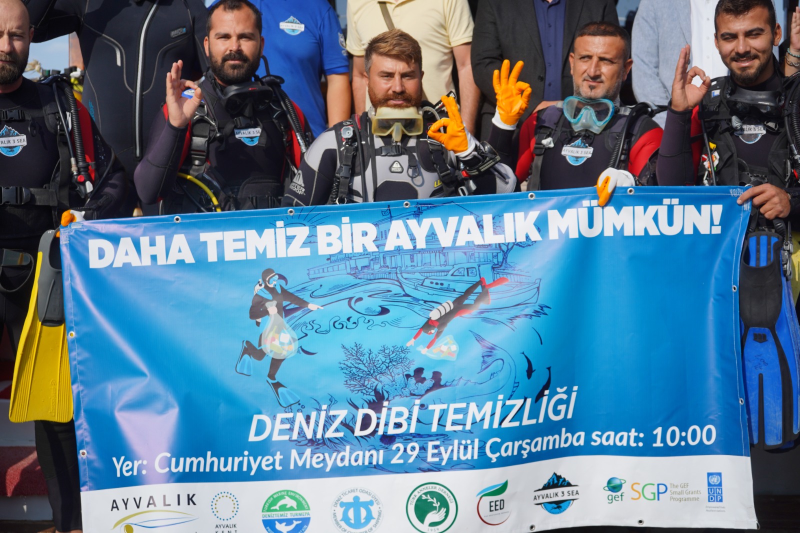 Ayvalık 3 Sea Dalış Merkezi öncülüğünde Deniz Temiz Derneği/TURMEPA, Ayvalık Kent Konseyi, Deniz Ticaret Odası İzmir ve Aliağa şubeleri, Ege Eko Turizm Derneği, SUFOD (Sualtı Fotoğrafçıları ve Filmcileri Derneği) BM Küresel Çevre Fonu ve Ayvalık Belediyesi desteği, Lipsoz Dalış Merkezi, Türk Anneler Derneği Ayvalık Şubesi işbirliğiyle Ayvalık’ta deniz temizliği yapıldı.