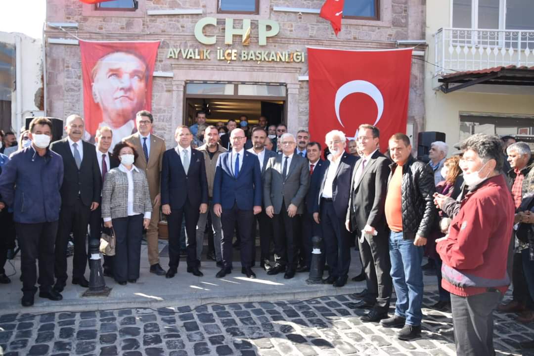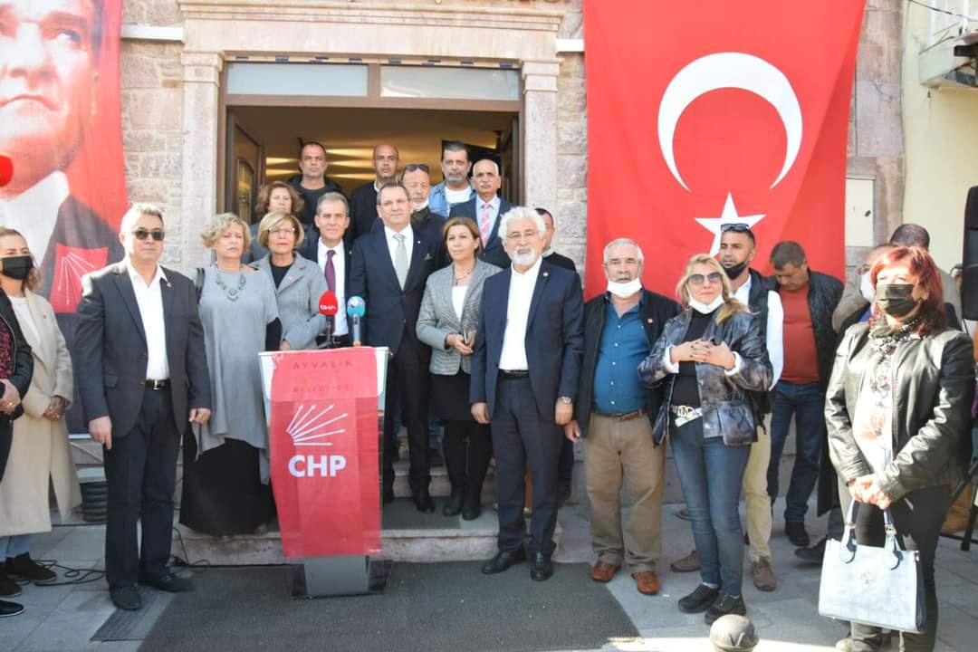 CHP Ayvalık İlçe Başkanlığı binasında CHP’ye geçen belediye başkanı, 7 meclis üyesi, ilçe yönetimi ve partililerin yanı sıra CHP Balıkesir Milletvekili, Ensar Aytekin, Balıkesir İl Başkanı Serkan Sarı, Burhaniye Belediye Başkanı Ali Kemal Deveciler, Balya Belediye Başkanı Orhan Gaga ile İYİ Parti Ayvalık ilçe başkanı Gülten Sütçüoğlu katıldığı açıklamada,  Ayvalık İlçe Başkanı Hüseyin Şalmanlı, “Ülkemizin içinde bulunduğu karamsar tablodan kurtuluşun tek çaresi Cumhuriyet Halk Partisi iktidarıdır. Bizler de CHP Ayvalık İlçe Örgütü olarak, partimizin iktidarı için, hep birlikte, el ele, kimseyi ötekileştirmeden, her bir oya ihtiyacımız olduğunu unutmadan çalışmaya devam ediyoruz. Biliyoruz ki, ülkemizin karanlıktan kurtuluşu Biz olursak mümkündür. Daha önce nerede olursanız olun, şimdi CHP çatısı altında aydınlık yarınlar için, halkın iktidarı için BİZ olma vaktidir. Yönetime geldiğimiz günden itibaren tek hedefimiz Atatürk sevdalısı, Cumhuriyet aşığı herkesi partimizin çatısı altında toplamaktı. Bu amaçla yönetimdeki tüm arkadaşlarım partiye üye kazandırmak için her koşulda çalıştılar, emek harcadılar. Bunun sonucunda da Türkiye’de bir yıl süresi içinde üye oranını yüzde olarak en çok arttıran ilçe olduk. Bugün de burada Belediye Başkanımızı ve 7 Meclis üyemizi partiye kazandırmanın gururunu yaşıyoruz. Başkanımız Mesut Ergin’e, Belediye Meclis Üyelerimiz Tülay Çankaya, Ethem Vardı, Hüseyin Ergin, Özge Toygar, Ali Jale, Merih Arslan ve Semih Varol’a örgütüm adına hoş geldiniz diyorum. Bugün her zamankinden daha güçlüyüz. Bugün her zamankinden daha mutluyuz.”