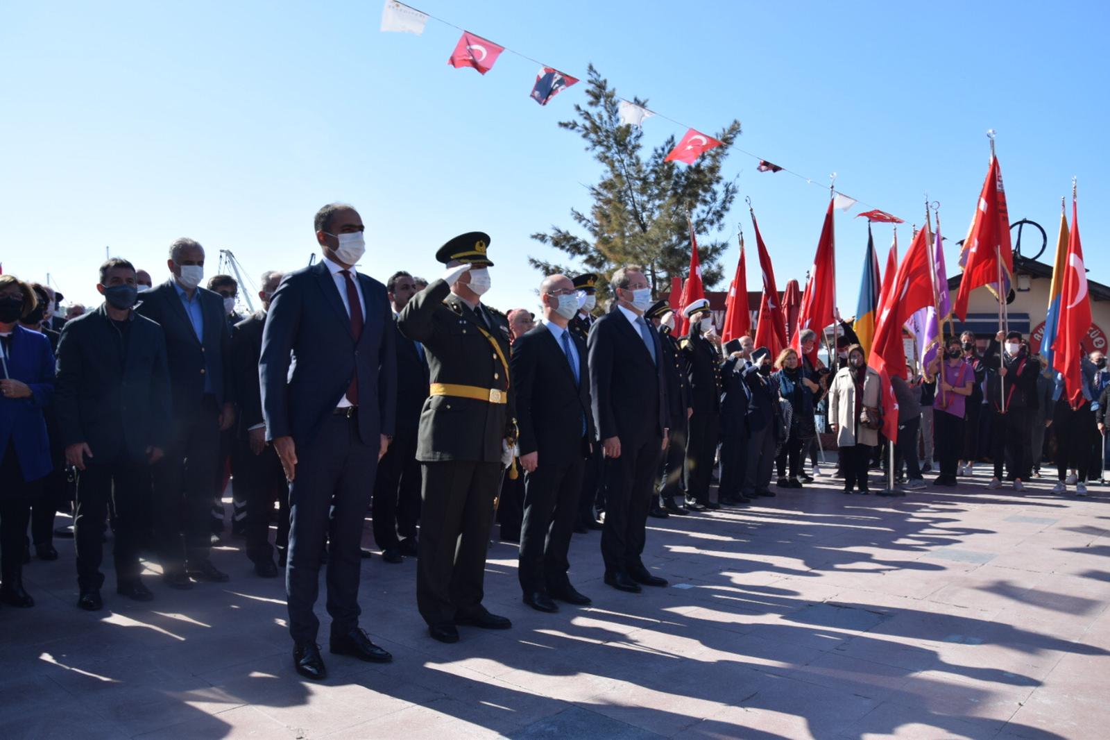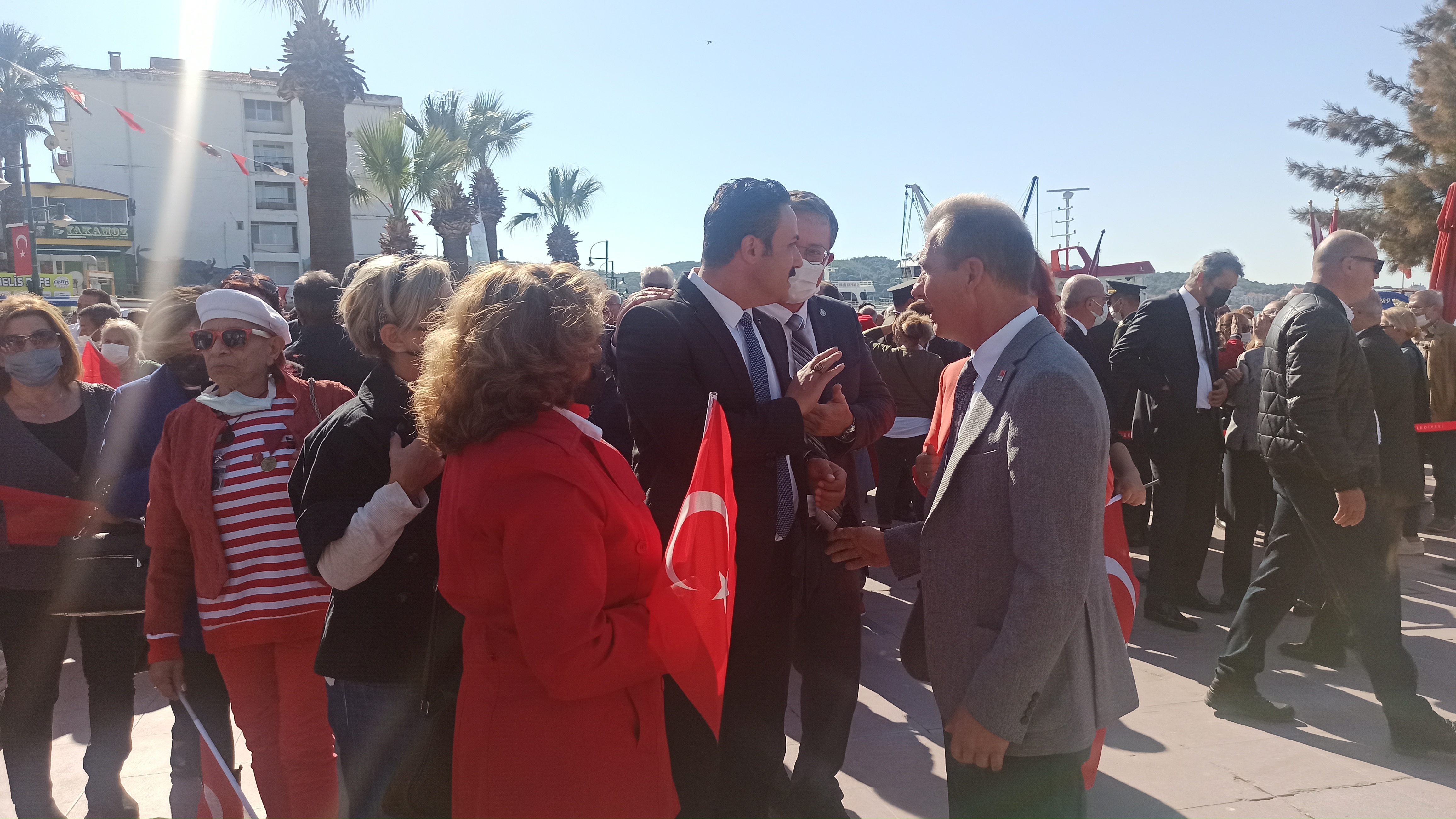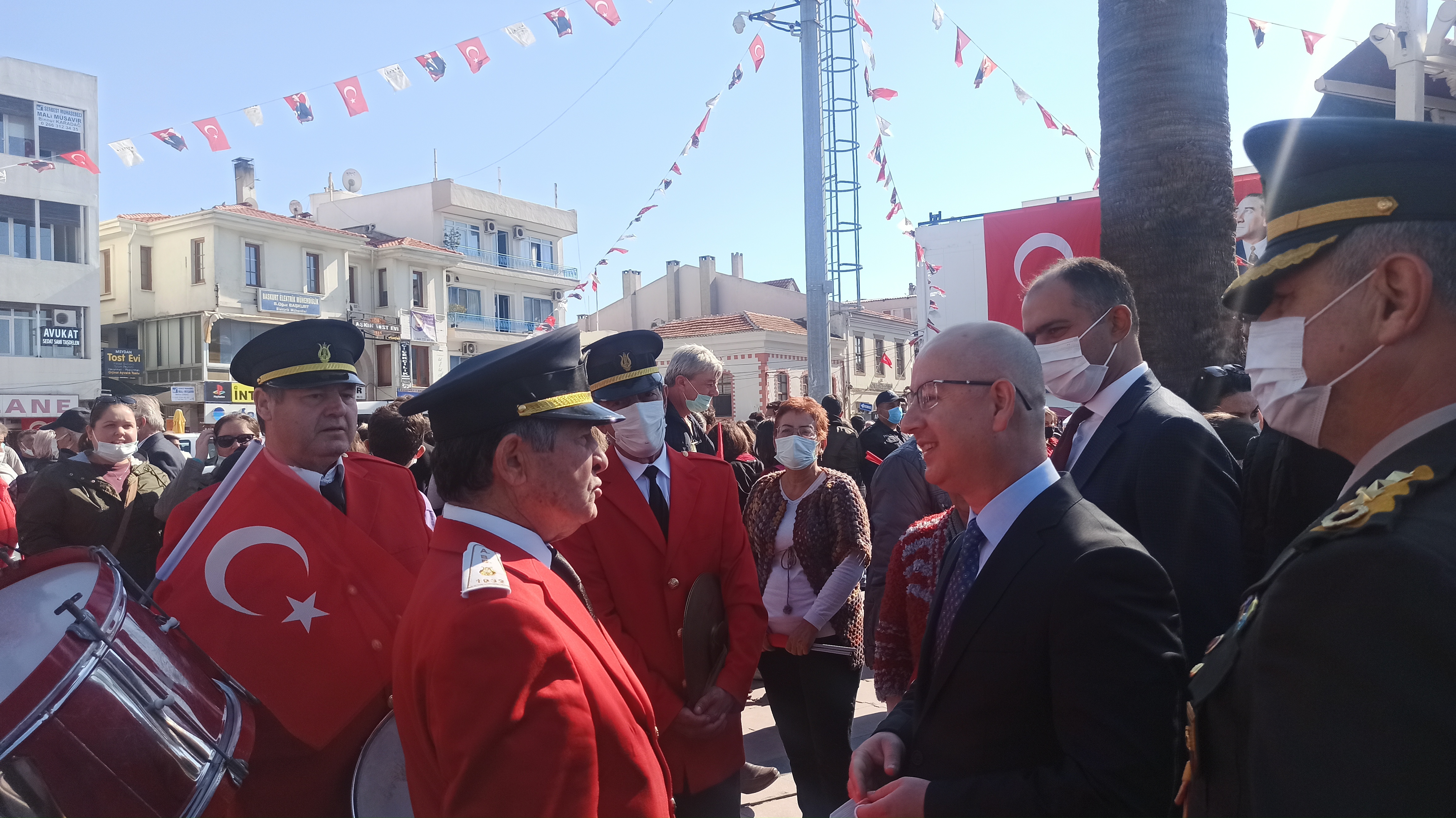 Cumhuriyet Meydanındaki tören vatandaşların Ata’nın anıtına çiçeklerini bırakmaları ile başladı. Kaymakam Hasan Yaman, Garnizon Komutanı Personel Albay Ertan Tutar, Belediye Başkanı Mesut Ergin Atatürk anıtına çelenk sunumu yaptı. saygı duruşu ve Ayvalık Belediye bandosu yönetiminde İstiklal Marşı okunmasının ardından resmi tören sona erdi.
