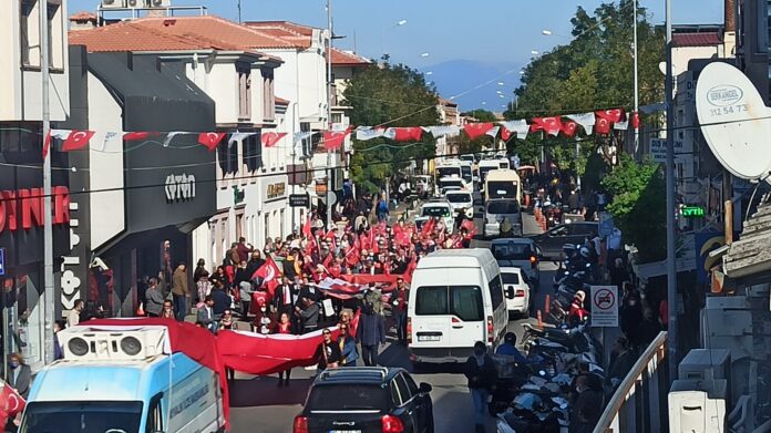Türkiye’nin ‘Bağımsızlık bildirgesi’ olan Cumhuriyet’in 98. kuruluş yıldönümü için ADD Ayvalık Şubesi tarafından organize edilen kortej yürüyüşü Ayvalık Deniz Hudut Kapısı önünden başladı. Atatürk Caddesi üzerinden meydana ellerinde Türk bayrakları ile Meydana yürüyen yerel yönetim, siyasi parti ve sivil toplum kuruluş temsilcilerine vatandaşlar alkışlarla katıldı.