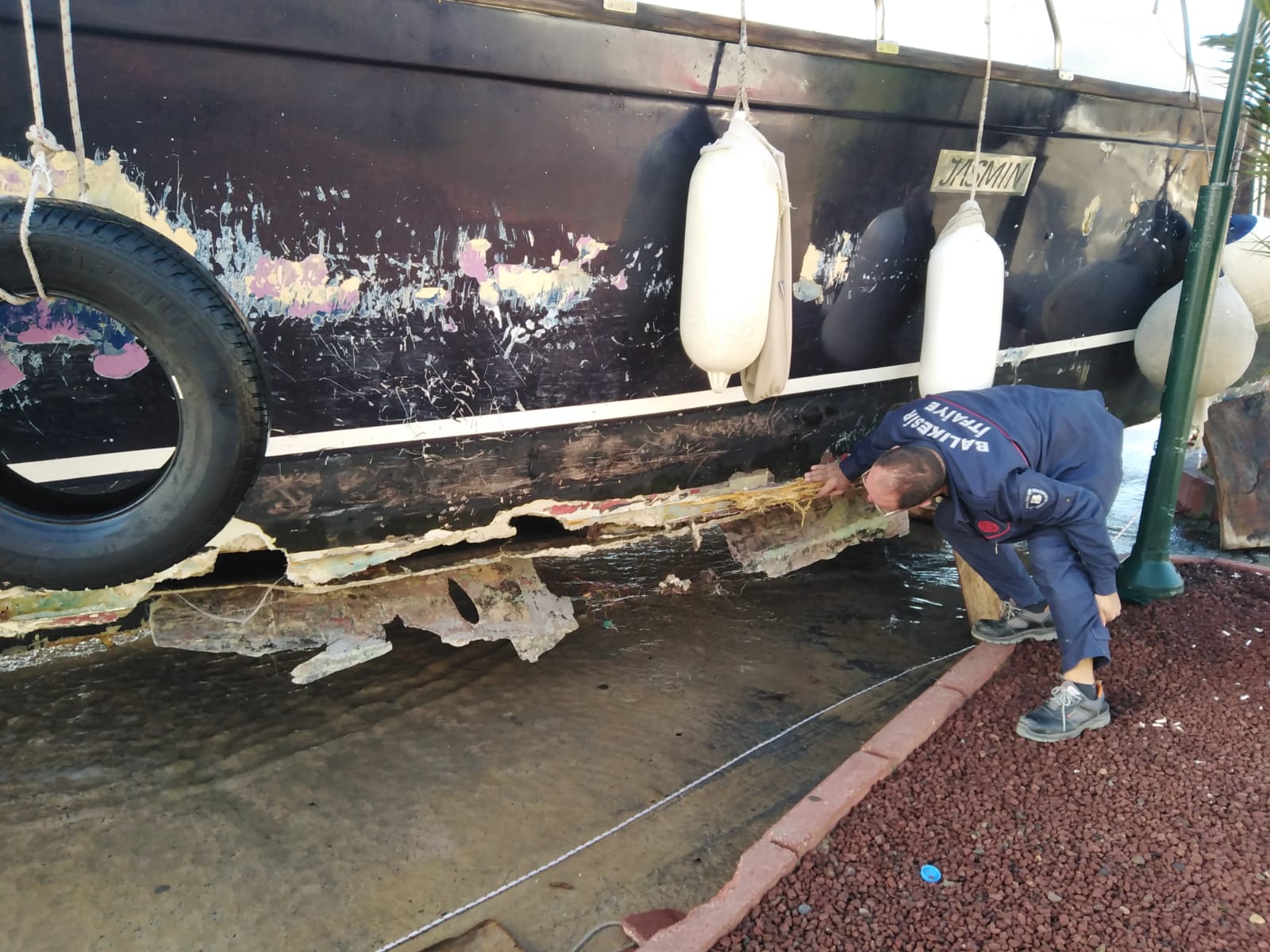 Ayvalık’ta hızı zaman zaman 60 km’ye ulaşan lodos fırtınasında balıkçı tekneleri de hasar gördü.