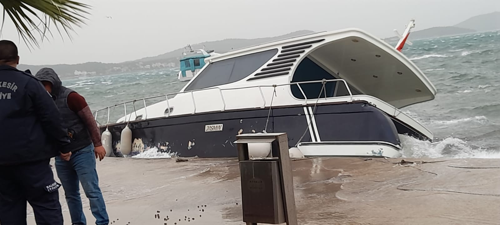 Salı sabahı başlayan kuvvetli fırtına gün içinde devam etti. Her fırtınada olduğu gibi bu fırtınada da, balıkçı barınağı yetersiz olan Ayvalık’ta deniz emekçileri zor saatler yaşadı. Alınan bilgiye göre; Ayvalık’ın Cunda Adasında 3, Armutçuk mevkiinde 2, Sakarya Mahallesi’nde 1 tekne fırtınada battı. Fırtınada şu ana kadar belirlenen ve müdahale edilen 6 tekne batma olayının olduğu öğrenildi. Ayvalık’ta batan iki teknenin su tahliyesi ve denizden çıkarılması Ayvalık İtfaiye Grup Amirliği desteğiyle yapıldı.