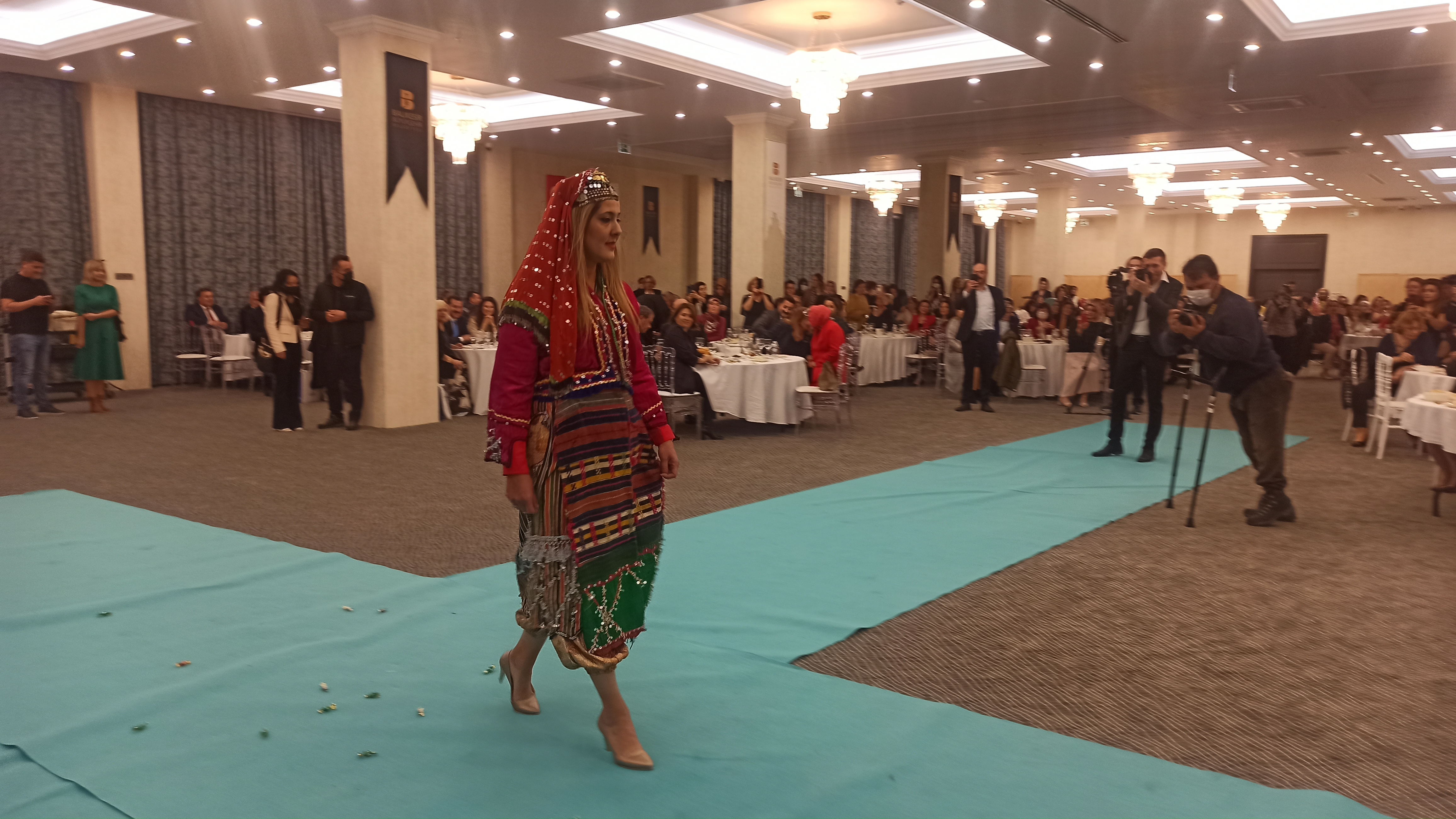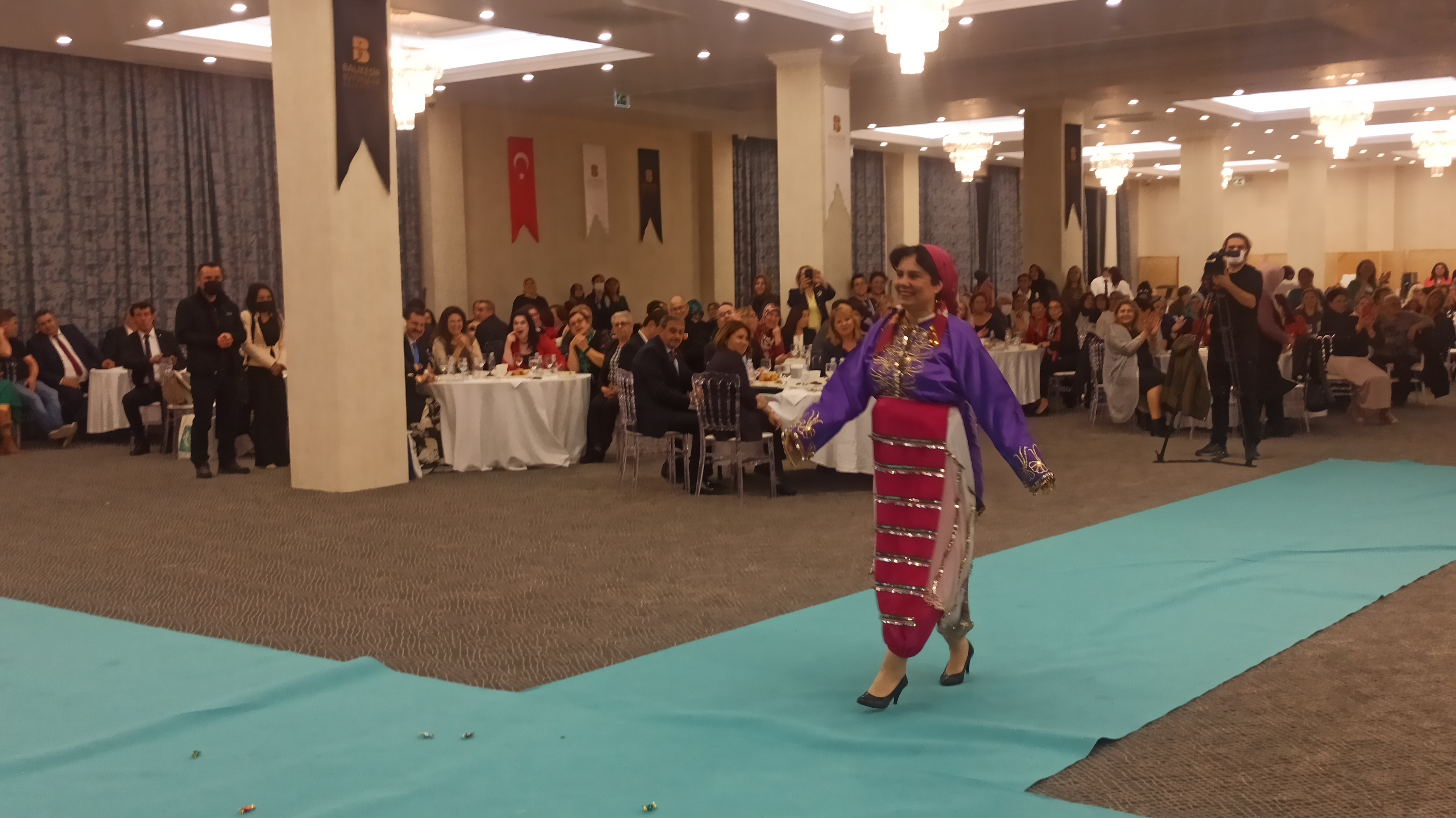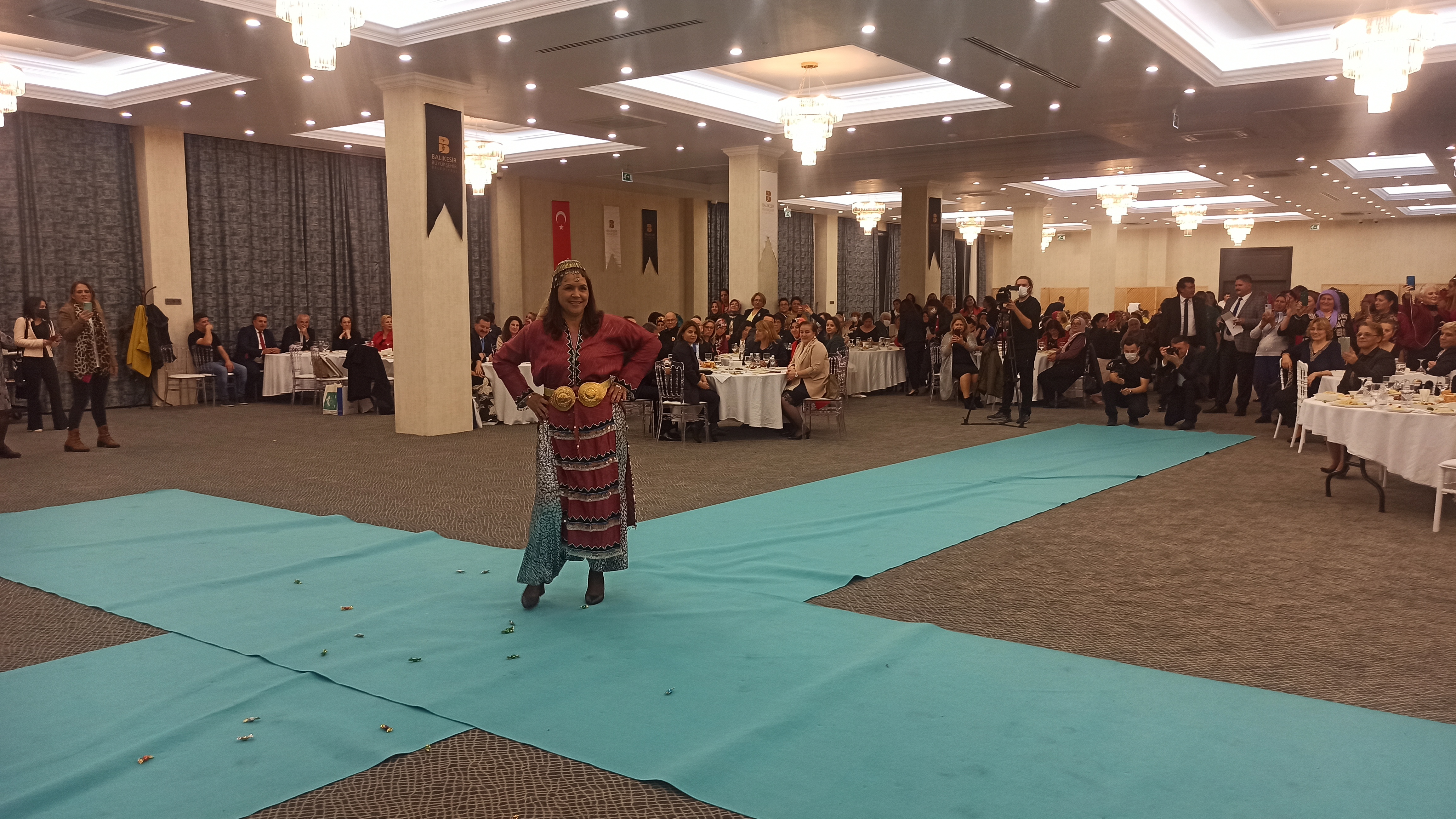 Balıkesir yöresi halk oyunlarının beğeniyle izlendiği gecede Kadın Muhtarlar, geçmişten bugüne Balıkesir yöresine ait geleneksel gelinlikleri mini defile ile sundu.