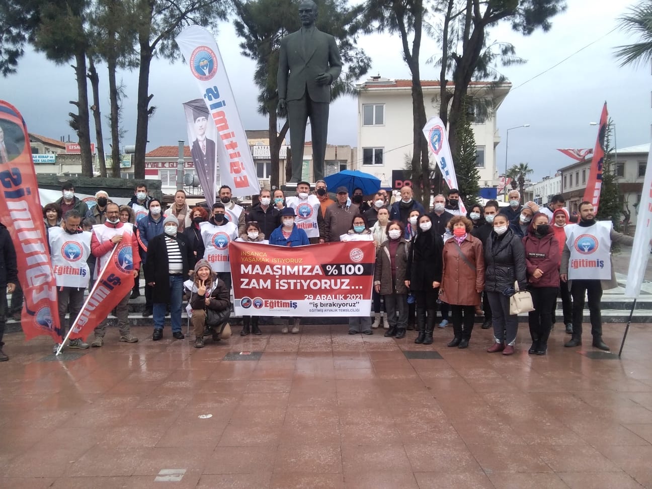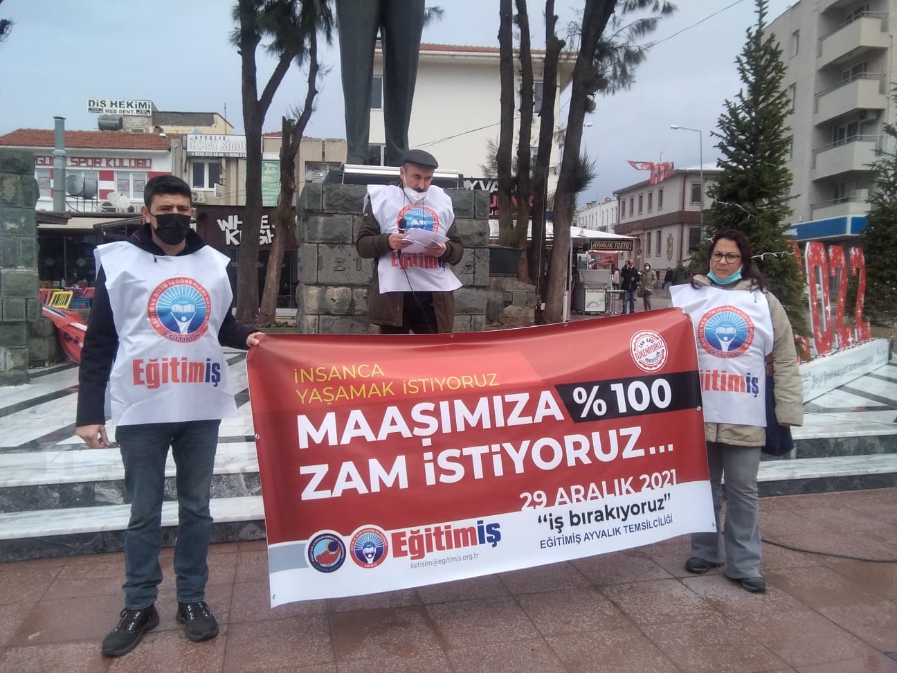 Eğitim-İş Ayvalık Baştemsilcisi Nahil Filiz tarafından yapılan açıklamada, “AKP iktidarı ekonomik krizin yükünü tamamen emekçilerin sırtına yıkan, gelir adaletsizliğini derinleştiren ve yoksullaşmayı artıran politikalar yürütmeye devam etmektedir.