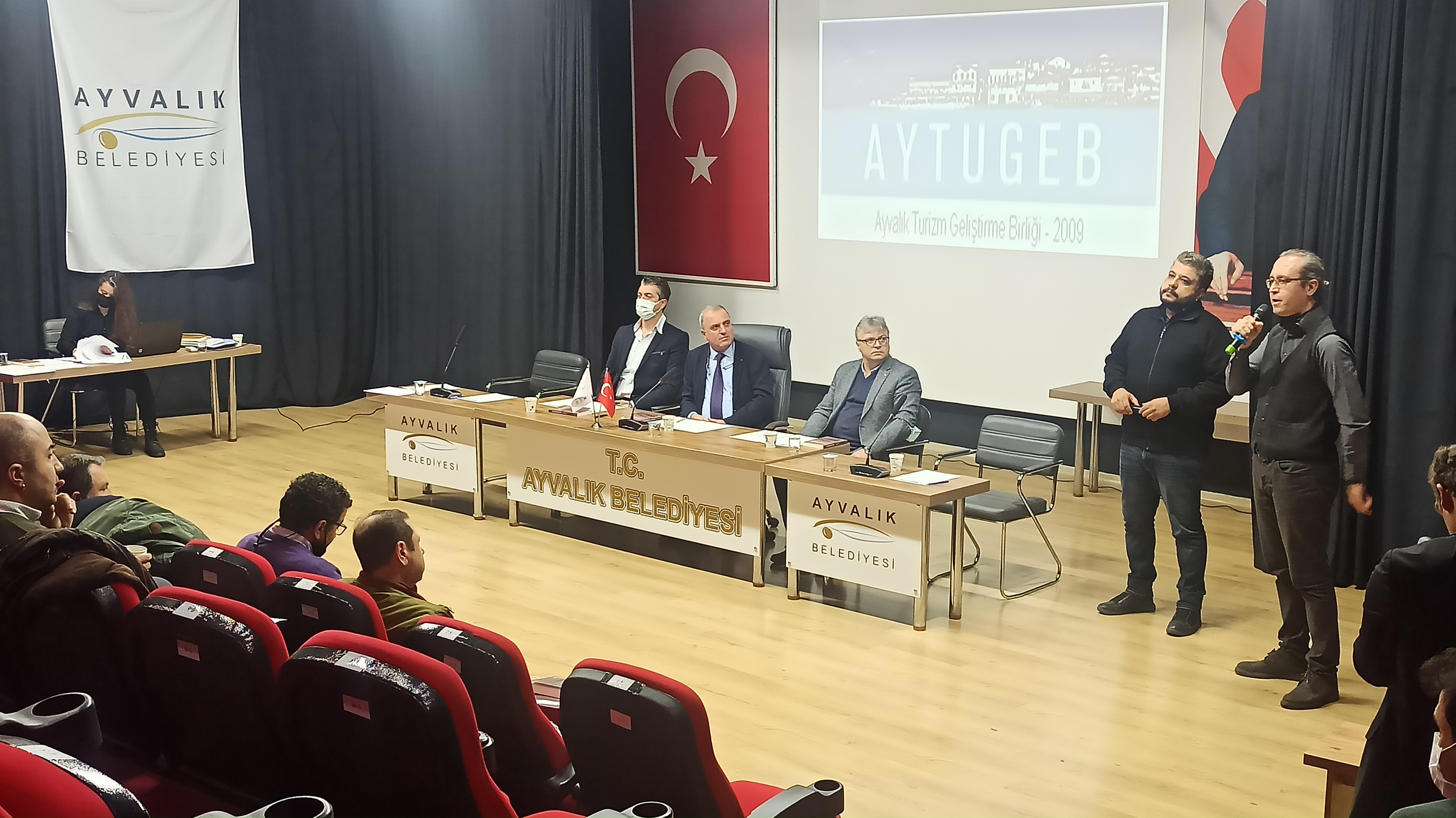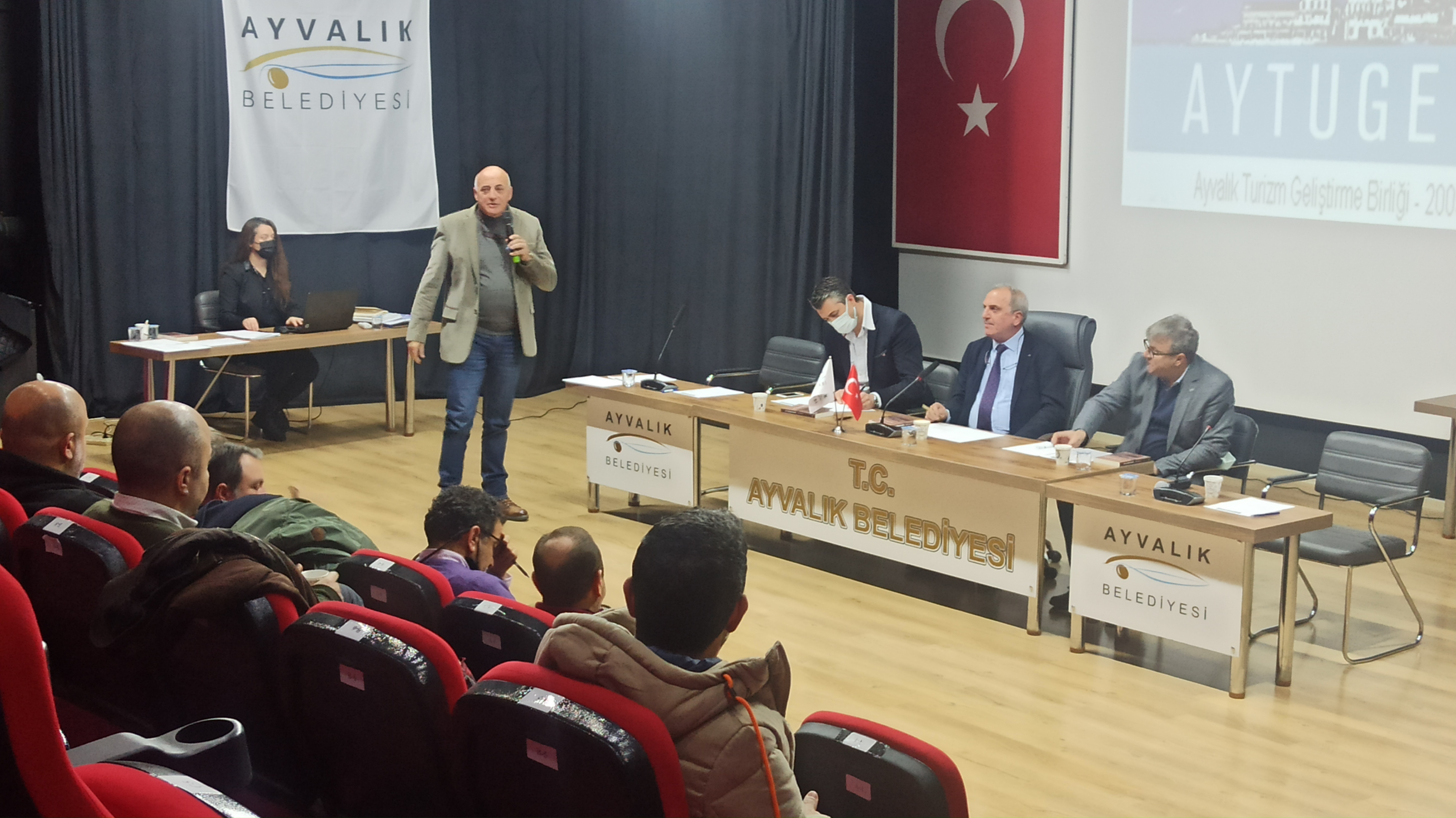 Ayvalık Turizm Geliştirme Birliği (AYTUGEB) 2021 yılı olağan Mali Genel kurulu, 27 Aralık tarihinde Ayvalık Vural Sinemasında yapıldı. Divan Başkanı olarak AYTUGEB Başkan yardımcısı Alp Sezek, katip üyeler olarak Onur Kunduzcu ve Mehmet Site’nin seçilmesinin ardından gündem maddelerinin görüşülmesine geçildi. 2019 ve 2020 yılı birlik encümeni faaliyet raporu AYTUGEB genel sekreteri Ümit Özgültekin tarafından katılımcılara aktarıldı.