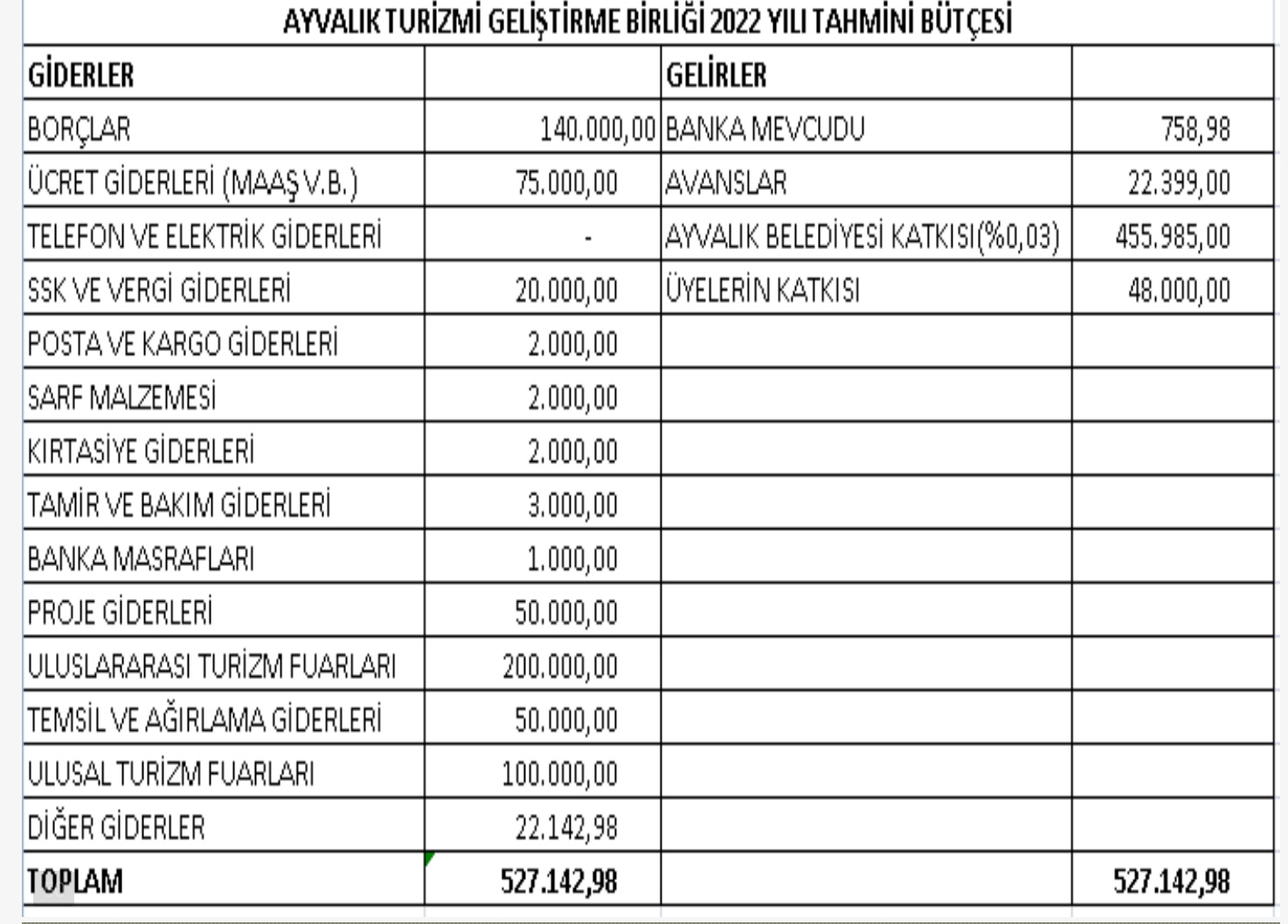 2009’dan bu yana faaliyet gösteren AYTUGEB’in özgeçmişi hakkında bilgi vererek konuşmasına başlayan Ümit Özgültekin, birlik encümen üyelerini de tanıtan, “AYTUGEB Ayvalık’ta turizm birliği olarak kuruldu. 5355 sayılı Mahalli idareler birliği yasası çerçevesinde kurulan bir turizm birliğidir. Hep dernek olarak düşünüldü ama dernek değildir. Birlik, Mahalli idareler denetimini sayıştay yapar ve belediye gibi çalışır. Belediyenin bütün alt yapısı birliğimizin alt yapısında mevcuttur. EMİTT, ITB Berlin Turizm ve BOOT Dusseldorf Fuarına, daha sonra Ankara’da Balıkesir Tanıtım Günlerine, Midilli Türk-Yunan Ticaret, Kültür ve Turizm Fuarı, Travel Turkey İzmir Turizm Fuarına katıldık. Bükreş Turizm Fuarında AYTUGEB olarak yer aldık. Miami Kruvaziyer Turizm Fuarına katıldık. 3 Güney Marmara Kalkınma Ajansı projesi başarıyla bitirildi. Visit Cunda projesi hala devam ediyor. Yurt içi ve yurt dışı fuarları için 3 bin adet Ayvalık tanıtım broşürü bastırıldı. Ayvalık, Cunda, Altınova ve Sarımsaklı’da turizm büroları oluşturduk. En dikkat çeken çalışmamız yurt içi ve yurt dışı fuarlara götürdüğümüz inovasyon içerikli flaş belleklerimiz oldu. Ayvalık Belediyesi ve AYTUGEB’in katkıları ile Türkiye Rüzgar Sörfü ligi Ayvalık’ta yapıldı. Sosyal medya blogger’larına Ayvalık tanıtıldı. Ayvalık ve AYTUGEB dünya kardeş şehirler turizm birliğine katıldı. Kardeş şehirler turizm zirvesine temsilci olarak ben katıldım. All Anatolia Turizm Yatırım ve Pazarlama zirvesine Kuzey Ege ve Ayvalık’ı temsilen AYTUGEB genel sekreteri olarak katıldım. Ayvalık ile ilgili iki kısa film CD’si hazırladık. Bu kısa filmleri çeşitli fuarlar ve sosyal medyada kullanıyoruz. Ayvalık stratejik turizm planı ve destinasyon yönetim örgütü modeli kitabı ile Ayvalık’ın gelecek 5 yılını planlıyoruz. Uluslararası Gurme Destinasyonları Derneği kuruldu. 2019 yılı olağan seçimli genel kurul yapıldı. Türkiye Turizm Tanıtım ve Geliştirme ajansı kuruldu. Gelişmeleri takip ediyoruz. 4. Uluslararası Termal Sağlık Turizm zirvesine katıldık. Gecikmiş vergi borçları için vergi dairesi yapılandırmasına başvuruldu. 12 aylık taksitlerle yapılandırma ödemesi bitirildi. 2019 yılı mali olağan genel kurulu yapıldı. Ayvalık, Küçükköy ve Altınova’nın tanıtımı amacıyla 2010 yılında 50 bin adet bastırılan haritalar EMİTT Turizm fuarı öncesi güncellendi. 30 Ocak-2 Şubat 2020 EMİTT fuarına katıldık. Pandemi sebebiyle 2020 yılı olağan genel kurulu ve mali kurul ertelendi. Balıkesir Arkeoloji Fuarına ve İsviçre Turizm fuarına katıldık. Balıkesir Büyükşehir Belediyesi tarafından düzenlenen turizm buluşmaları toplantısına katıldık. Birleşmiş Milletler Kalkınma Programı tarafından yürütülen, Yerel Yönetimler Reformu güncelleme çalışmaları çerçevesinde Yerel Bilgi sistemi eğitimine katıldık. Bu kapsamda Çevre Şehircilik Bakanlığı ile iletişim halindeyiz. SGK borcumuz 22.12.2020 tarihinde yapılandırmaya dahil edilmiş olup 18 ay taksit yaptırılmıştır. Ödemeler belediyemizin katkılarıyla düzenli olarak yapılmaktadır. 2-4 Aralık İzmir Travel Turkey fuarına katıldık.” dedi.