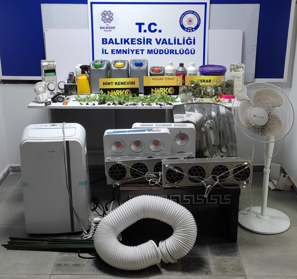 Balıkesir Valiliğinden yapılan açıklamada, ‘Balıkesir İl Emniyet Müdürlüğü Ayvalık Narkotik Suçlarla Mücadele Grup Amirliği görevlilerince yapılan çalışmada , şüpheli bir şahsın ikametinde özel düzenek kurmak suretiyle uyuşturucu madde imal ve ticareti yaptığı yönünde tesbitte bulunulması üzerine yapılan ikamet aramasında;
