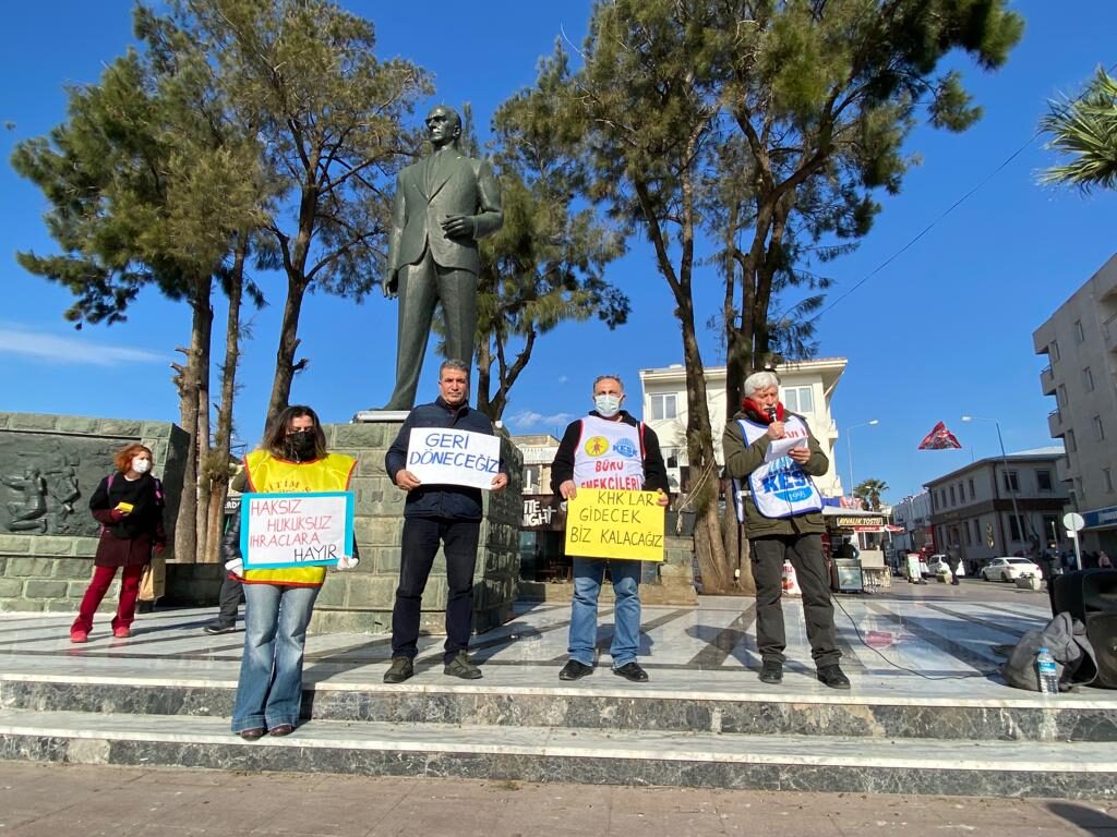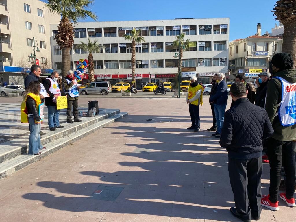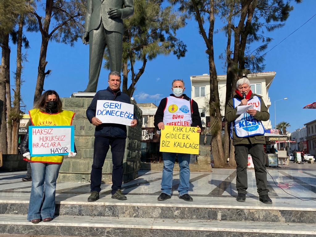 OHAL KHK’sı ile kamu emekçilerinin ihracına son verilmesini isteyen Ayvalık KESK bileşenleri, yaptıkları açıklamada, ” İktidar temel hak ve özgürlüklere yönelik baskı politikalarına son vermeli. Ceza ve soruşturmaları durdurmalıdır.” Denildi.