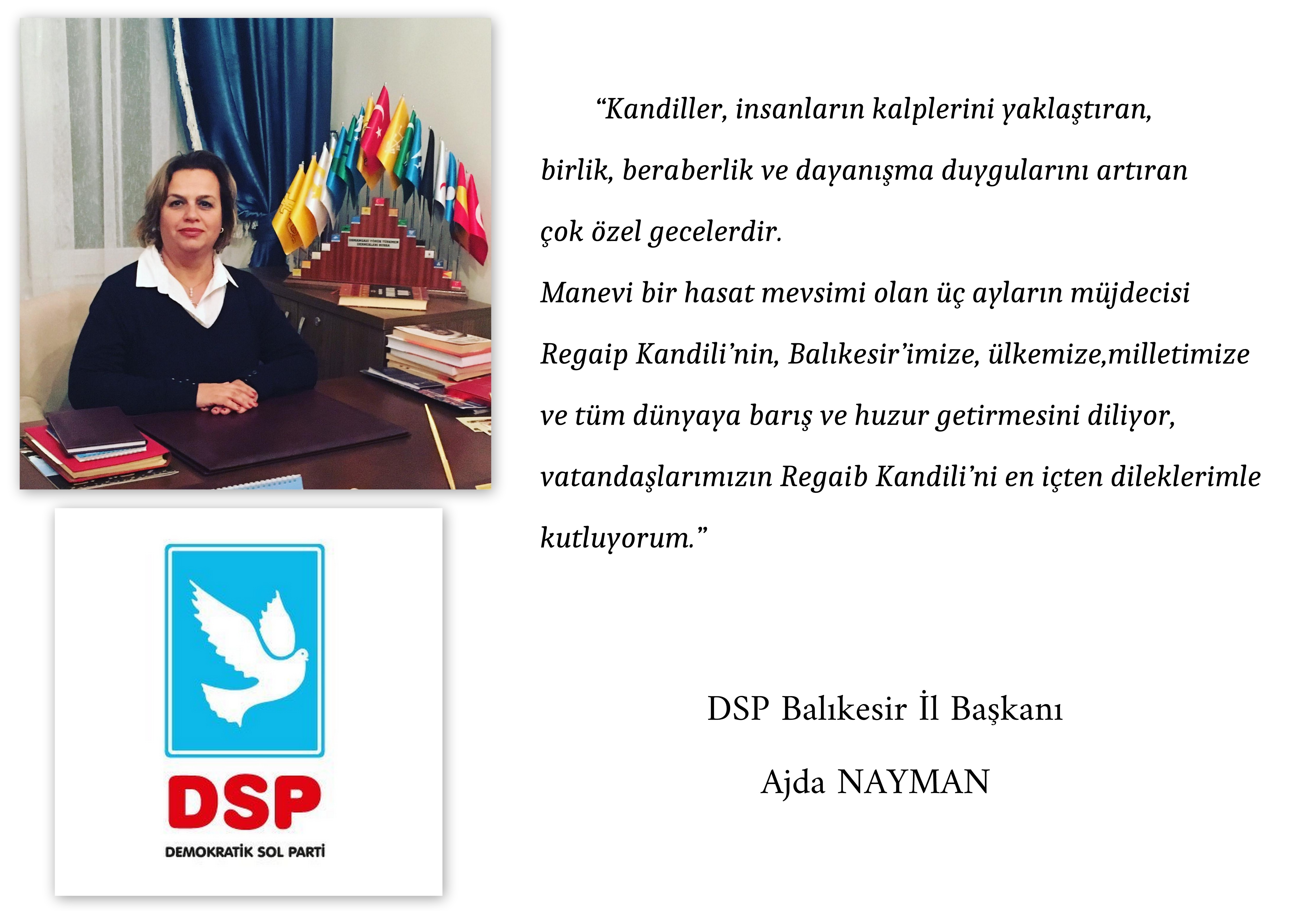 DSP BALIKESİR İL BAŞKANLIĞI’NDAN ÜÇ AYLAR VE REGAİB KANDİLİ MESAJI