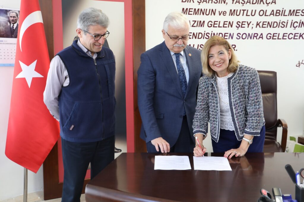 Burhaniye’de yapımı planlanan belediye sağlık merkezi için bağış protokolü Burhaniye Belediye Başkanı Ali Kemal Deveciler ile Nur Çakıroğlu Albak arasında imzalandı.