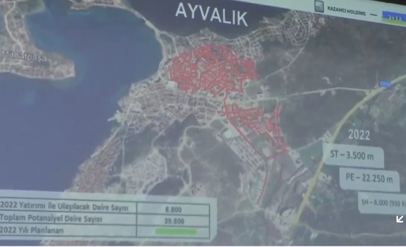 İkinci etapla ilgili sorulara yanıt veren Üstüner, ” belediye ile koordineli çalışıyoruz. Daha sonra genişlemeyi düşünüyoruz. Sahil bölgesine doğru. Ana iletim hatlarımız yapilacak ki devamında bu işlemleri gerçekleştirebilelim. Ana dağıtım hattımızı yapalım ki genişleyelim. Şu anda Ayvalık belediyesi ile koordineli çalıştığımız alan burası. Peyderpey imalatların tamamı gerçekleştirilecek. Bu projenin tamamıyla ilgili olarak şu kadar sürede gerçekleştireceğiz diye birşey olamaz. Yapa yapa gittiğimiz için hem de belediyenin bütçeleri önemlidir yüzey kaplamaları belediye yapıyor hem de yolların açık olması önemli. Esas olan burada belediye ile koordineli bir çalışma gerçekleştirmemiz. Altınova,Cunda da ve bu tarafta belli uç noktalara gitmemiz beli yıllar alacaktır ama koordineli çalışıyoruz. ”