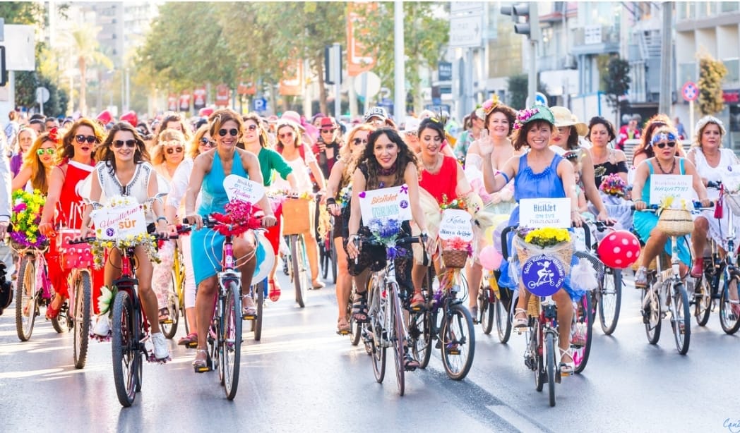 9 yıl önce ilk kez İzmir’de bir grup kadın tarafından düzenlenen Süslü Kadınlar Bisiklet Turu her yıl yeni katılımlarla büyüyerek uluslararası bir bisikletli kadın hareketine dönüştü. Gönüllü kadınların bireysel inisiyatifiyle organize edilen bisiklet turu yıllar içinde İtalya’dan Almanya’ya Kanada’dan İran’a birçok ülkede binlerce kadının bisiklete binmeyi öğrenmesine ve bisiklet kullanımını günlük hayatlarına dahil etmelerine aracı oldu. 2022 yılında Birleşmiş Milletler tarafından Bisiklet Özel Ödülü alan Süslü Kadınlar Bisiklet Turu’nu organize eden ve etkinliğe katılan kadınların ortak dilekleri: