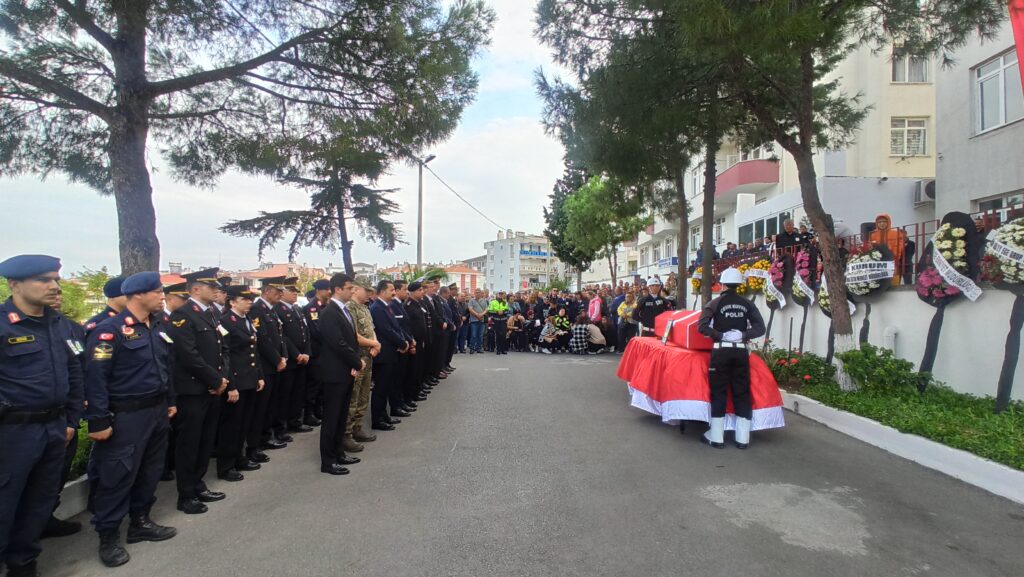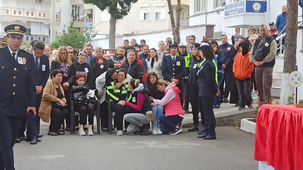 Ayvalık İlçe Emniyet Müdürlüğü’nde görevli trafik polisi Hakan Duyar, önceki gün evinde fenalaştı. Evli ve 2 çocuk babası Duyar, Ayvalık Devlet Hastanesi’ne kaldırıldı. Beyin kanaması geçirdiği belirlenen Duyar, ilk müdahalenin ardından Edremit Devlet Hastanesi’ne sevk edildi. Duyar, burada doktorların tüm müdahalesine rağmen dün hayatını kaybetti. Polis memuru Hakan Duyar için 13 yıldır görev yaptığı Ayvalık İlçe Emniyet Müdürlüğü’nde tören düzenlendi. Törene Duyar’ın eşi Meltem Duyar, kızları İlayda ve Defne Eylül Duyar’ın yanı sıra Balıkesir Emniyet Müdürü Hasan Onar, Ayvalık Emniyet Müdürü Turgut Coşkun, Ayvalık İlçe Jandarma Komutanı Yüzbaşı Onur Yakan, Ayvalık Belediye Başkanı Mesut Ergin, İlçe Emniyet Müdürlüğü ve İlçe Jandarma Komutanlığı personeli ve Duyar’ın mesai arkadaşları katıldı.