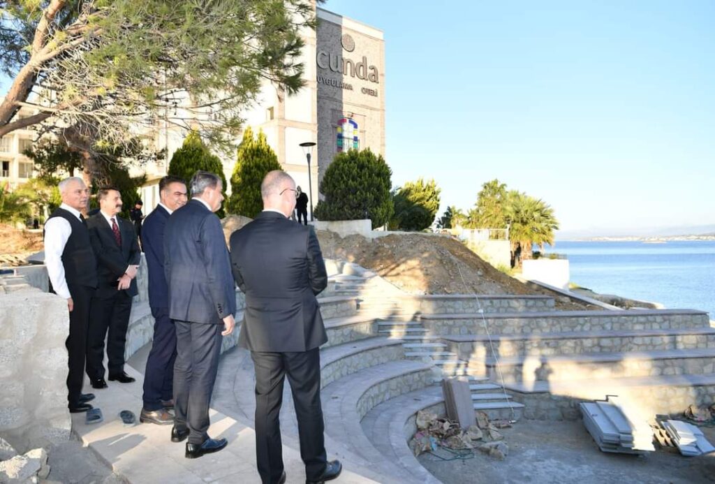 Cunda Uygulama Otelinde yürütülen Sahil Projesi ve Rekreasyon Alanı çalışmalarını inceleyen ve çalışmalarla ilgili bilgi alan Vali Şıldak, “Turizm alanında nitelikli insan gücü yetiştiren İlimizin bu seçkin konaklama tesisi yapılan kapsamlı düzenlemeyle standardını yükseltiyor.” Dedi.
