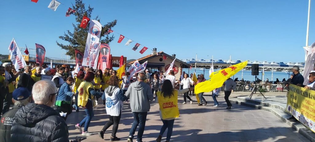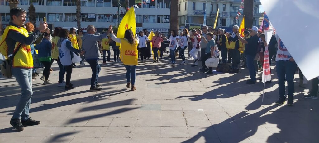 Açıklama, sendika temsilci ve üyeleri birlikte çektiği halayla tamamlandı.