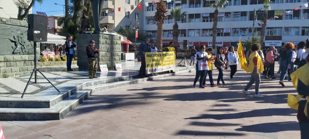 Eğitim ve Bilim İşgörenleri Sendikası (Eğitim-iş) adına yaptığı açıklamada şube başkanı Nahil Filiz, “Bugün eğitim emekçisinin, haksızlıklar karşısında susmayacağını, baskılara boyun eğmeyeceğini, mesleğinin onuruna, çocuklarının geleceğine sahip çıkacağını göstermenin günüdür.