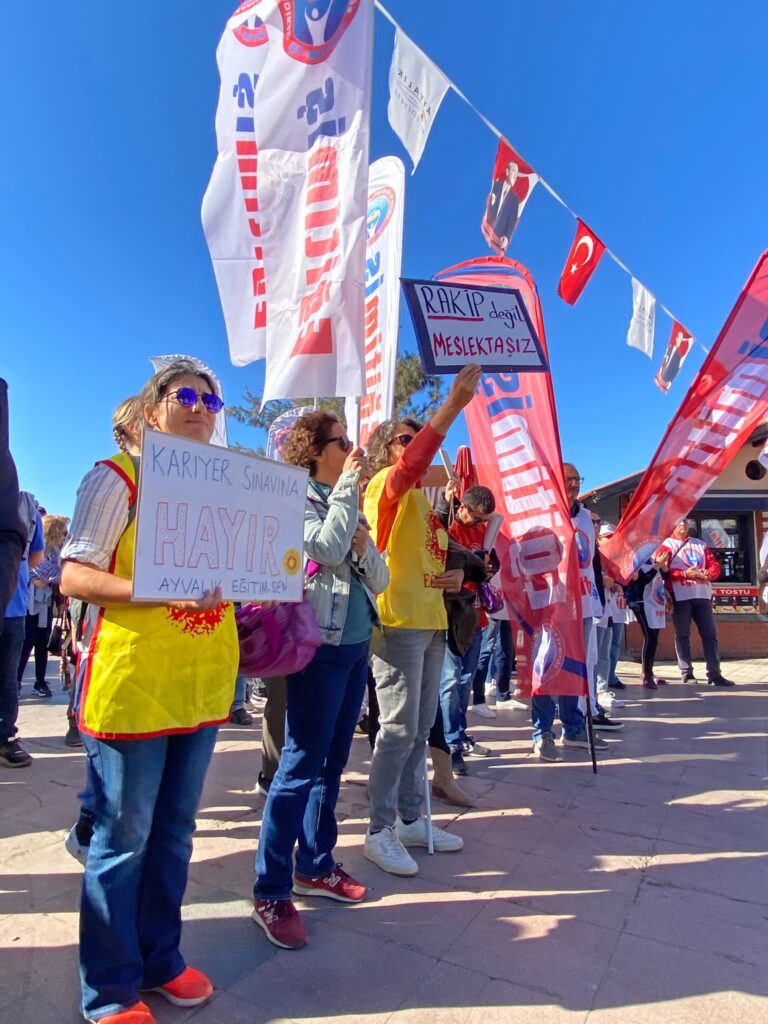 Eğitim Sen, kariyer basamakları sınavının iptali, Öğretmenlik Meslek Kanunu’nun yeniden düzenlenmesi, yoksulluk sınırı üzerinde bir ücret artışı, güvenceli iş, kamusal ve demokratik eğitim mücadelesini sürdürmeye kararlılıkla devam edecektir.” Dedi.