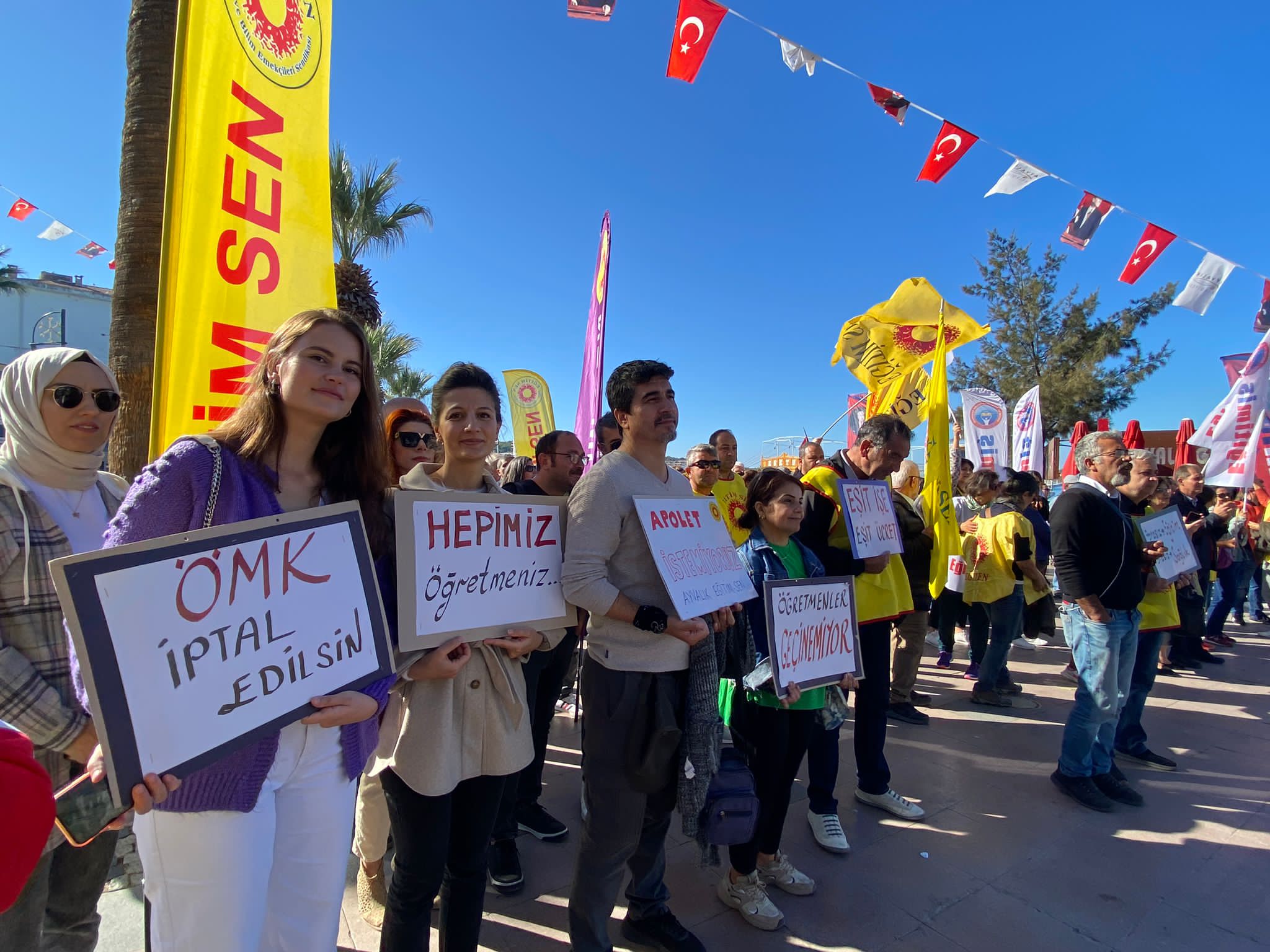 Öğretmenlik Meslek Kanunu ve diğer sorunlara karşı birlikte eylem kararı veren eğitim sendikalarına üye öğretmenler ülke çapında iş bıraktı. Ayvalık’ta Cumhuriyet Meydanında biraraya gelen sendika temsilcileri, sorunlara çözüm bulunmasını istedi.