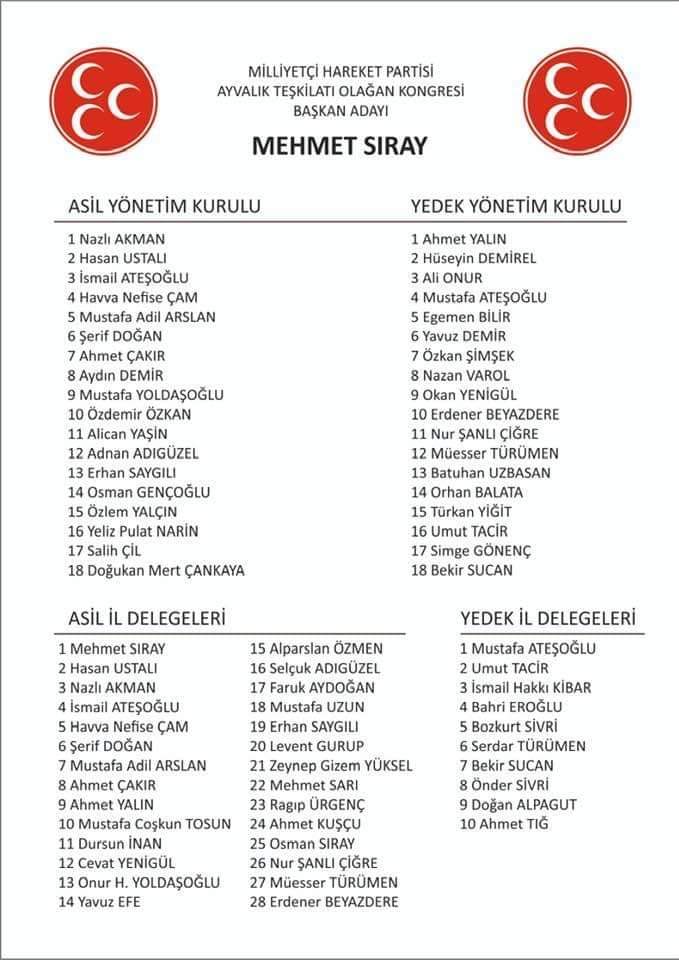 MHP Ayvalık İlçe Başkanlığı yeni yönetim kurulu şu isimlerden oluştu;